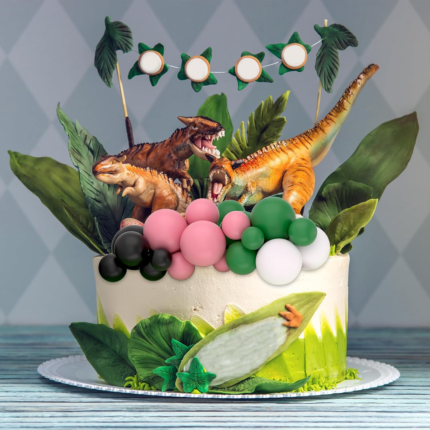 - Package includes: 32 pcs balls cake decorations with different colors and Sizes. They are pink, green,black,white colors as picture showed, 8 pieces of each color.