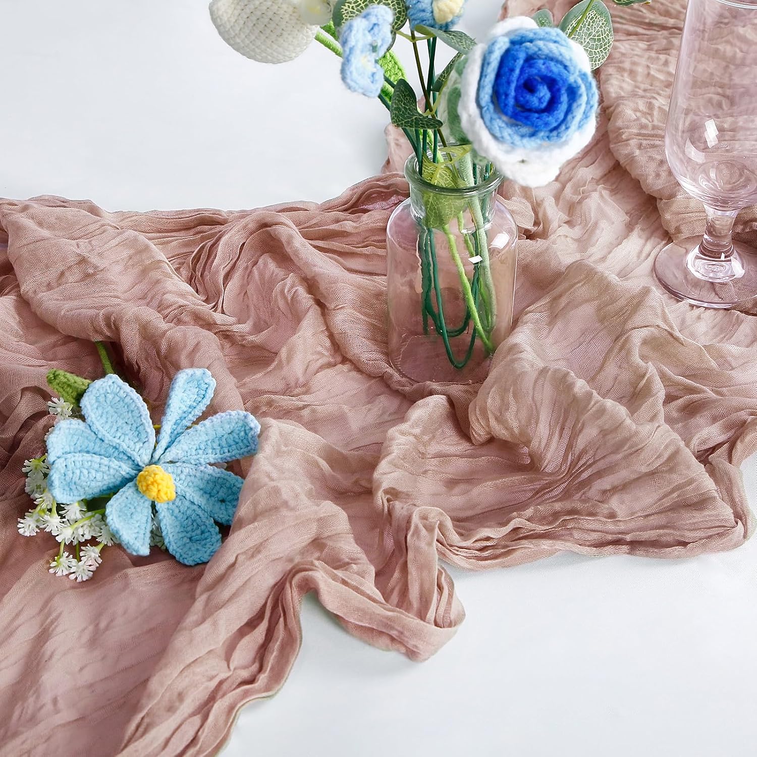 - 💖 【Premium & Breathable Material】 Crafted from high-quality polyester gauze, our table runners are ultra-soft, lightweight, and skin-friendly with delicate frayed edges for a rustic charm. The dusty pink hue cheese cloth table runner adds a romantic touch, while the crinkled texture cheesecloth ensures elegant draping for any table setting.