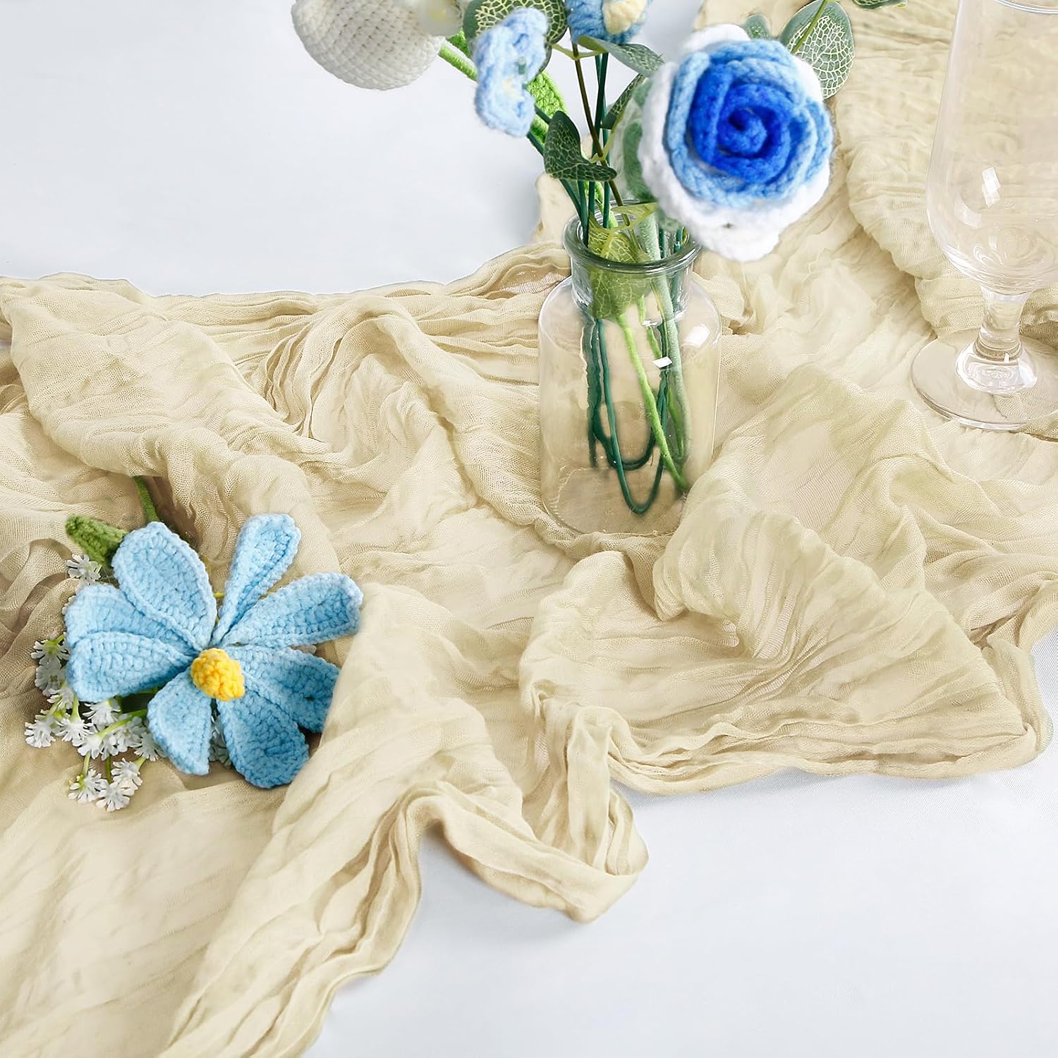 - 💖 【Easy Care & Reusable】Table runners are machine-washable (gentle cycle in a laundry bag) or hand wash in cold water, avoid direct exposure to the sun. No ironing needed. The sheer table runner are elaborately shaped through special craftsmanship that resistant to fading and shrinking possessing excellent long time use. Cheesecloth table runners natural wrinkles enhance its boho vibe!