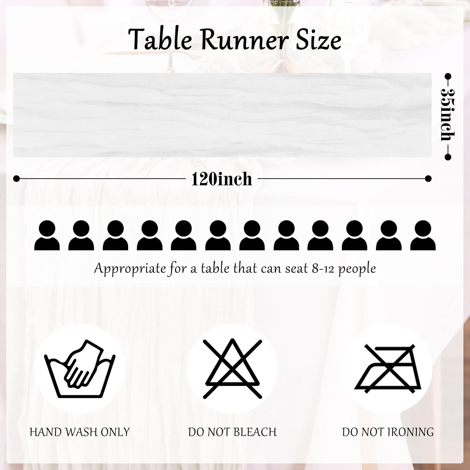 - đ ăEasy Care & ReusableăTable runners are machine-washable (gentle cycle in a laundry bag) or hand wash in cold water, avoid direct exposure to the sun. No ironing needed. The sheer table runner are elaborately shaped through special craftsmanship that resistant to fading and shrinking possessing excellent long time use. Cheesecloth table runners natural wrinkles enhance its boho vibe!