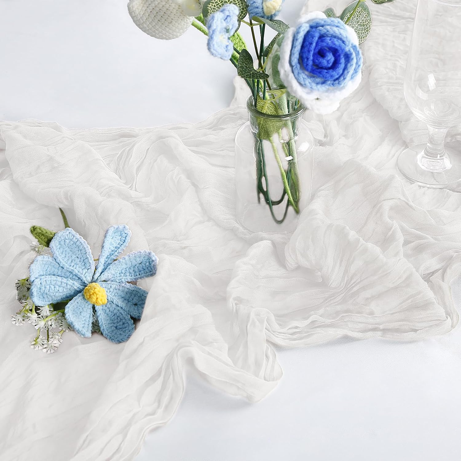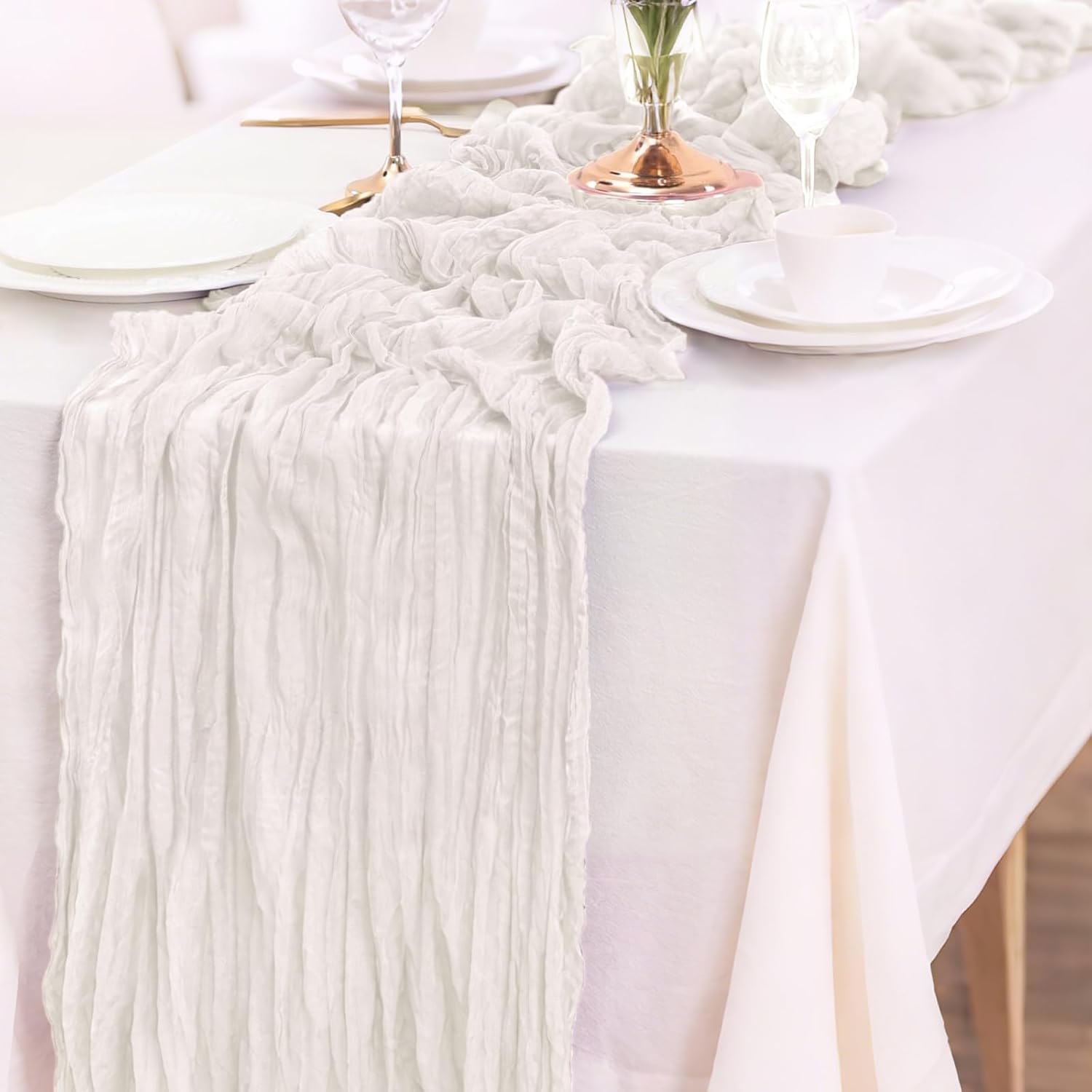Cheesecloth Table Runner 10FT (35x120 Inch) - 10 Pack White Boho Gauze Fabric Cheese Cloth Table Runner Rustic Sheer Table Runners Cheesecloth for Wedding, Bridal Shower, Birthday Party Decor