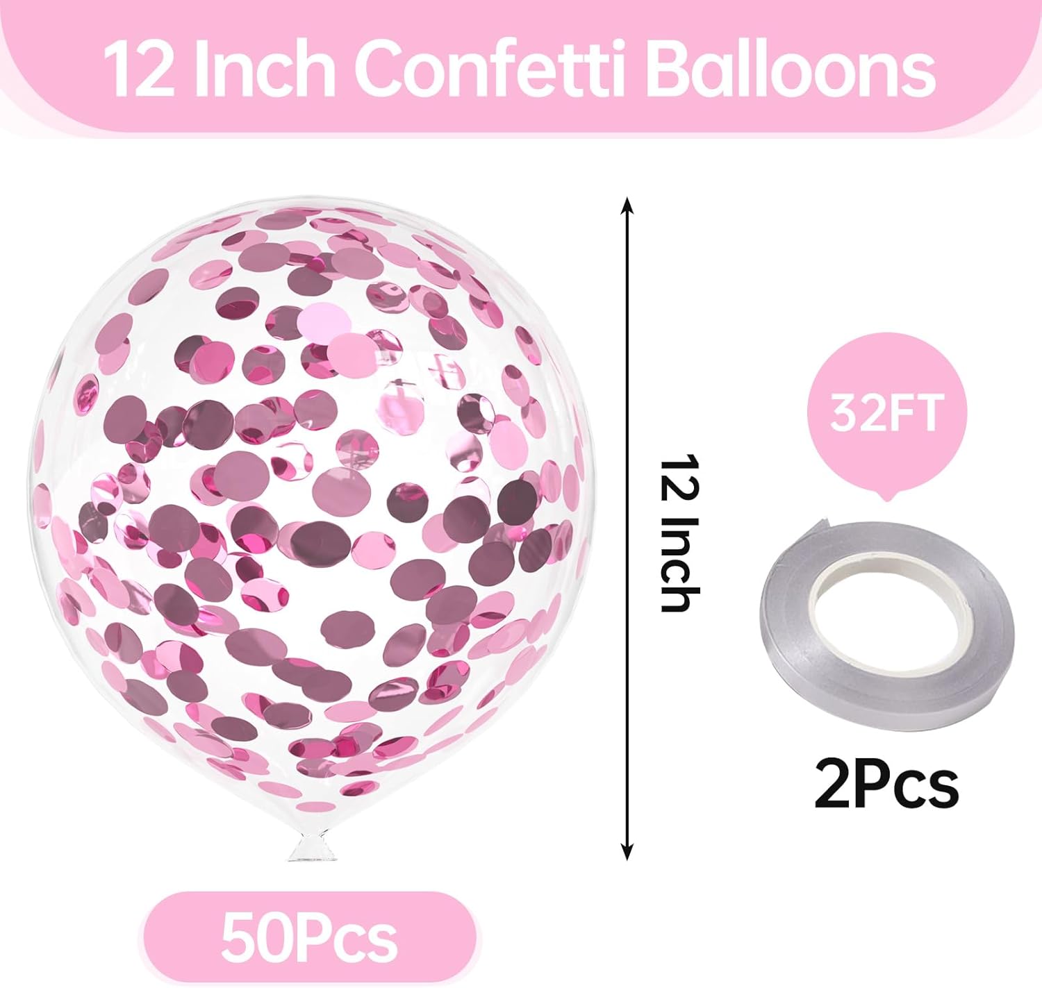 50pcs Light Pink Foil Confetti Balloons,12 inch Latex Balloon with Light Pink Confetti Inside for Birthday Family Party Wedding Party Baby Shower Decoration Supplies
