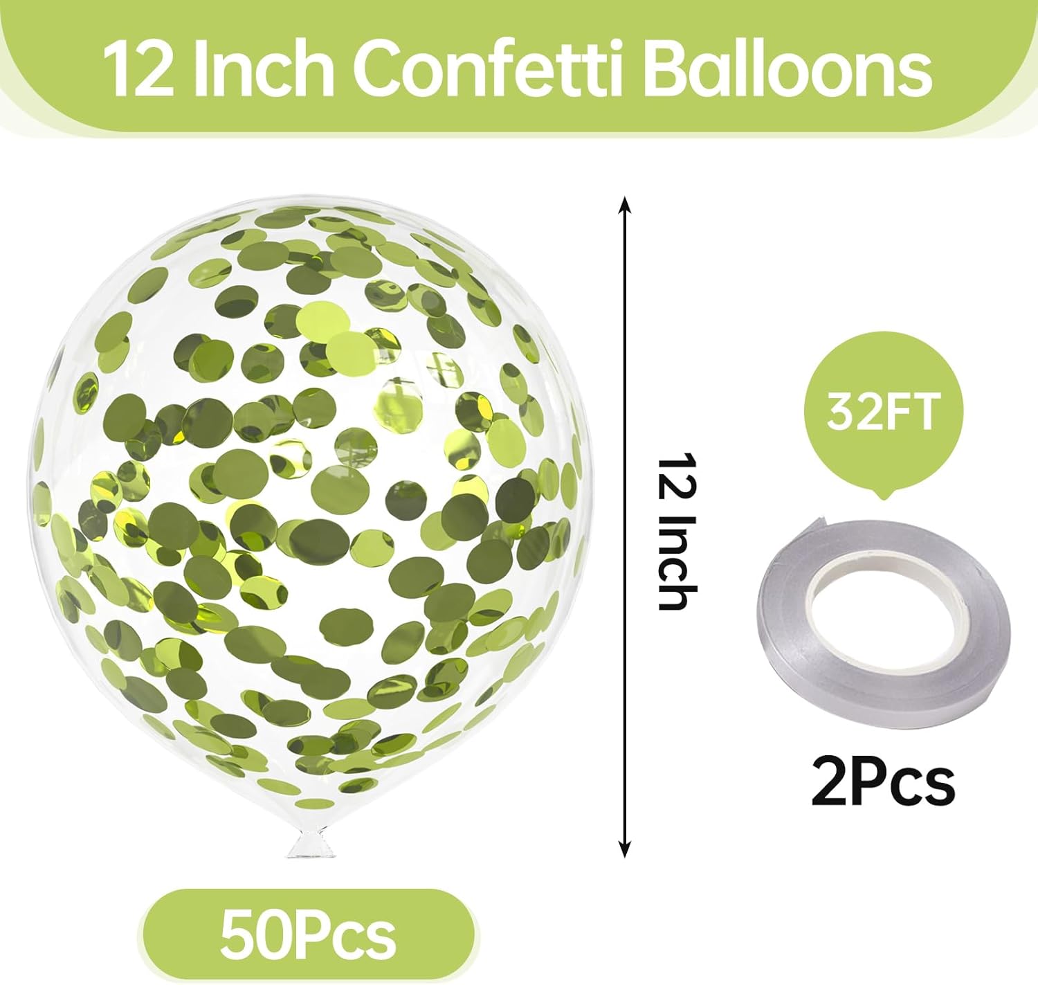 50pcs Lime Green Foil Confetti Balloons,12 inch Latex Balloon with Lime Green Confetti Inside for Birthday Family Party Wedding Party Baby Shower Decoration Supplies