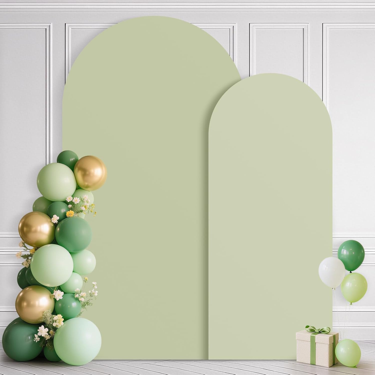 - 【Arch Covers Package】2 Piece Arch Cover (Arch stand not included), color: Sage Green. We have arch backdrop covers of different sizes --- size: 7.2 feet x 4 feet (H x W) / 6 feet x 2.7 feet (H x W). Please measure the size of the arch in your home before purchasing and choose the appropriate backdrop cover. If you have any questions, please feel free to contact us at any time.
