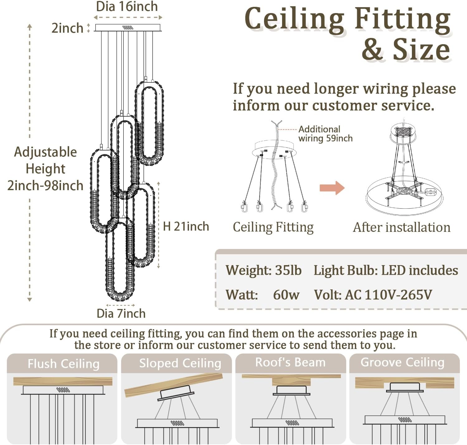 - 【Ring Chandelier Installation】: You only need to install the fixture into the ceiling box and then assemble the pendants,(Note: If a crystal was broken during shipment, please contact us for a free replacement).