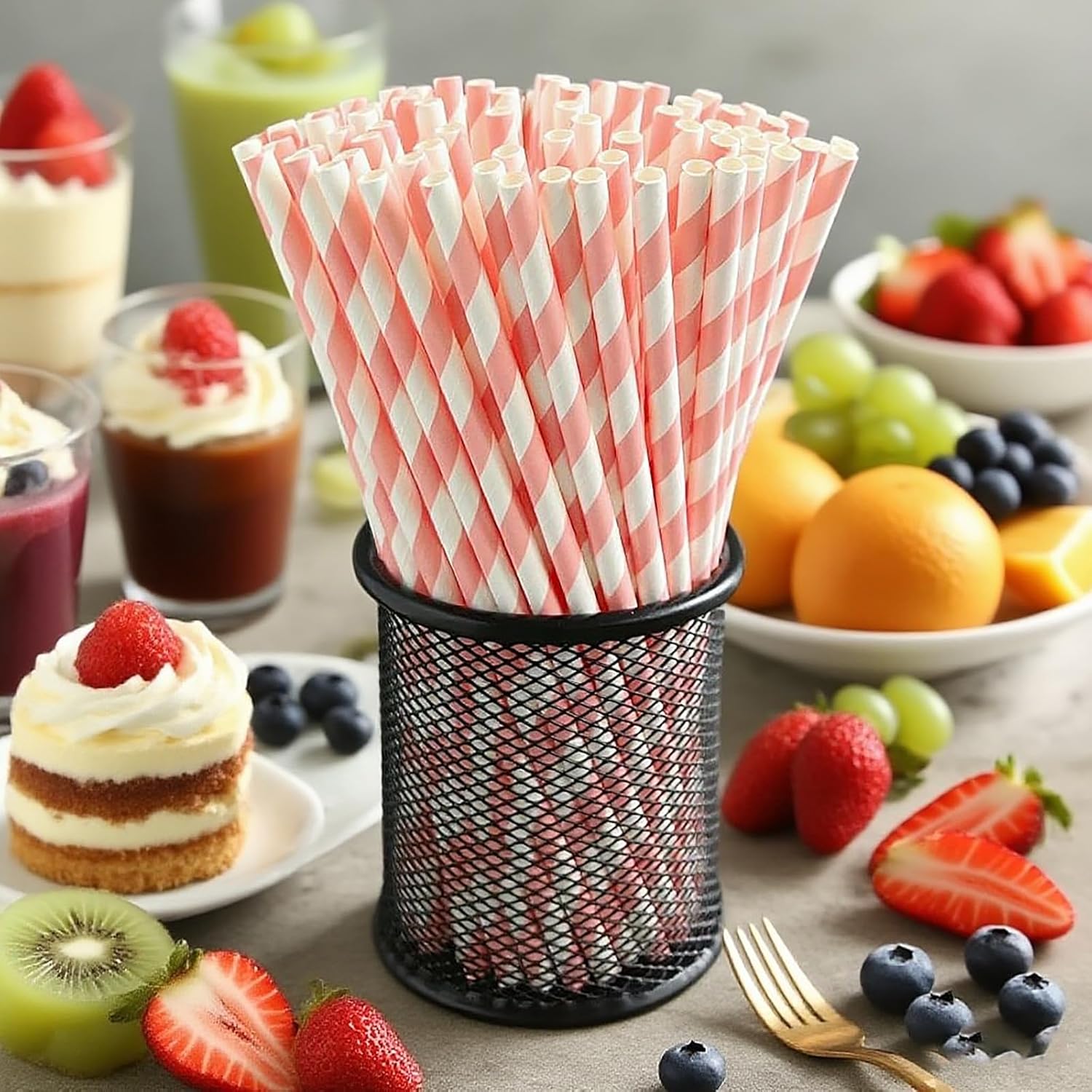 YAOSHENG pink Paper Straws for drinking, 100 Pack pink Striped paper straws for Party Supplies,Birthday,Wedding,Juice, shakes,Smoothies,cocktail