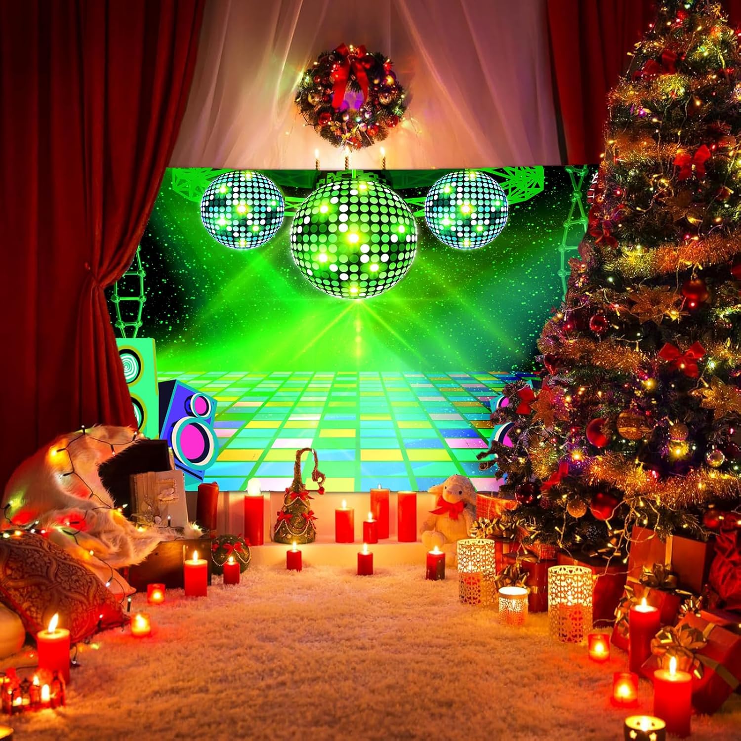 - Matirial :made of lightweight polyester, the backdrop is easy to install, resistant to deformation or wrinkling, and perfect for parties, including disco and music events.