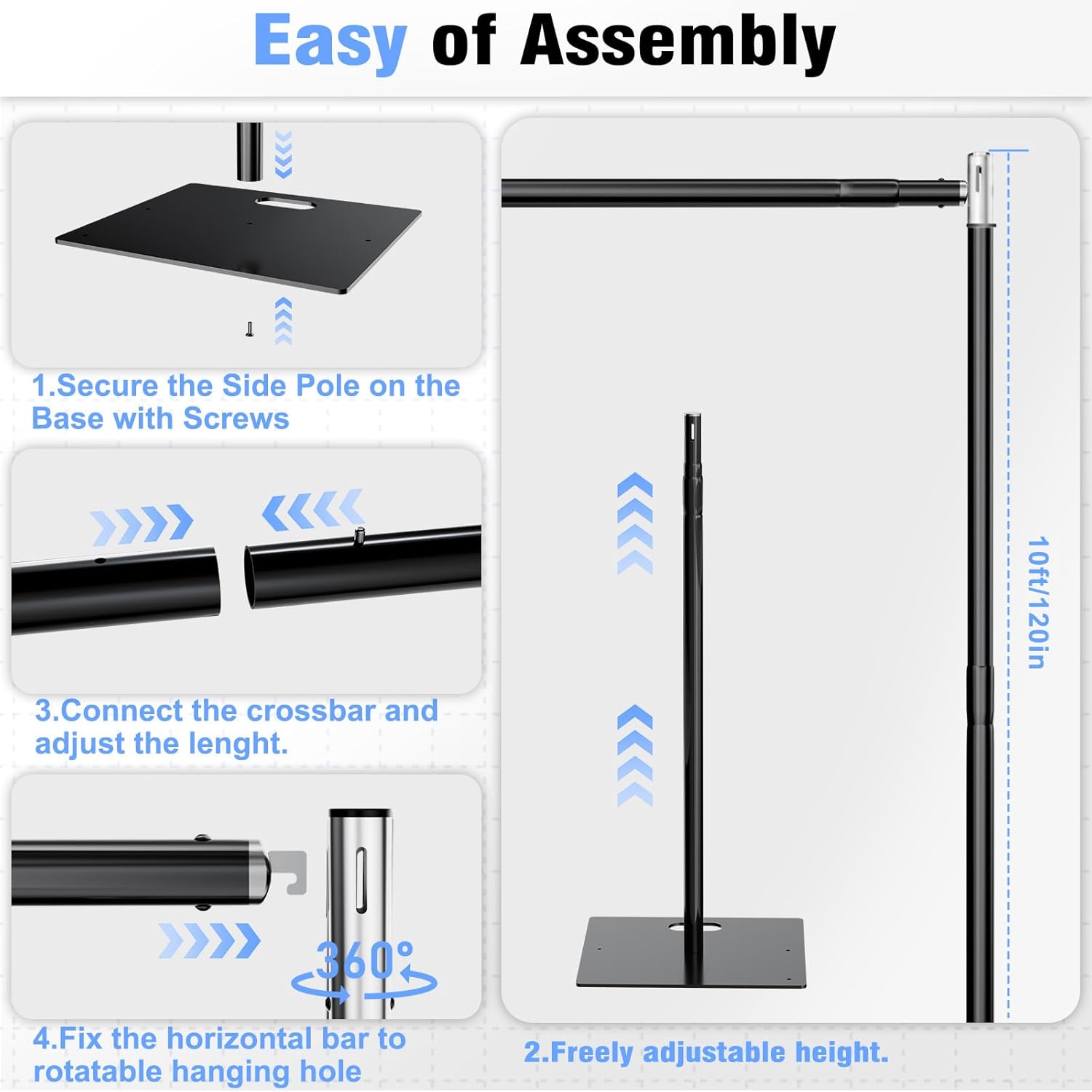 - Rotary Locking Design: Our backdrop stands use rotary locking design to adjustable height (from 3.1 feet to 8 feet) and width (from 6.2 feet to 10 feet), easy and quick adjust makes it perfect for accommodating a variety of backdrop sizes, itβs ideal background stand to meet your mutiple need