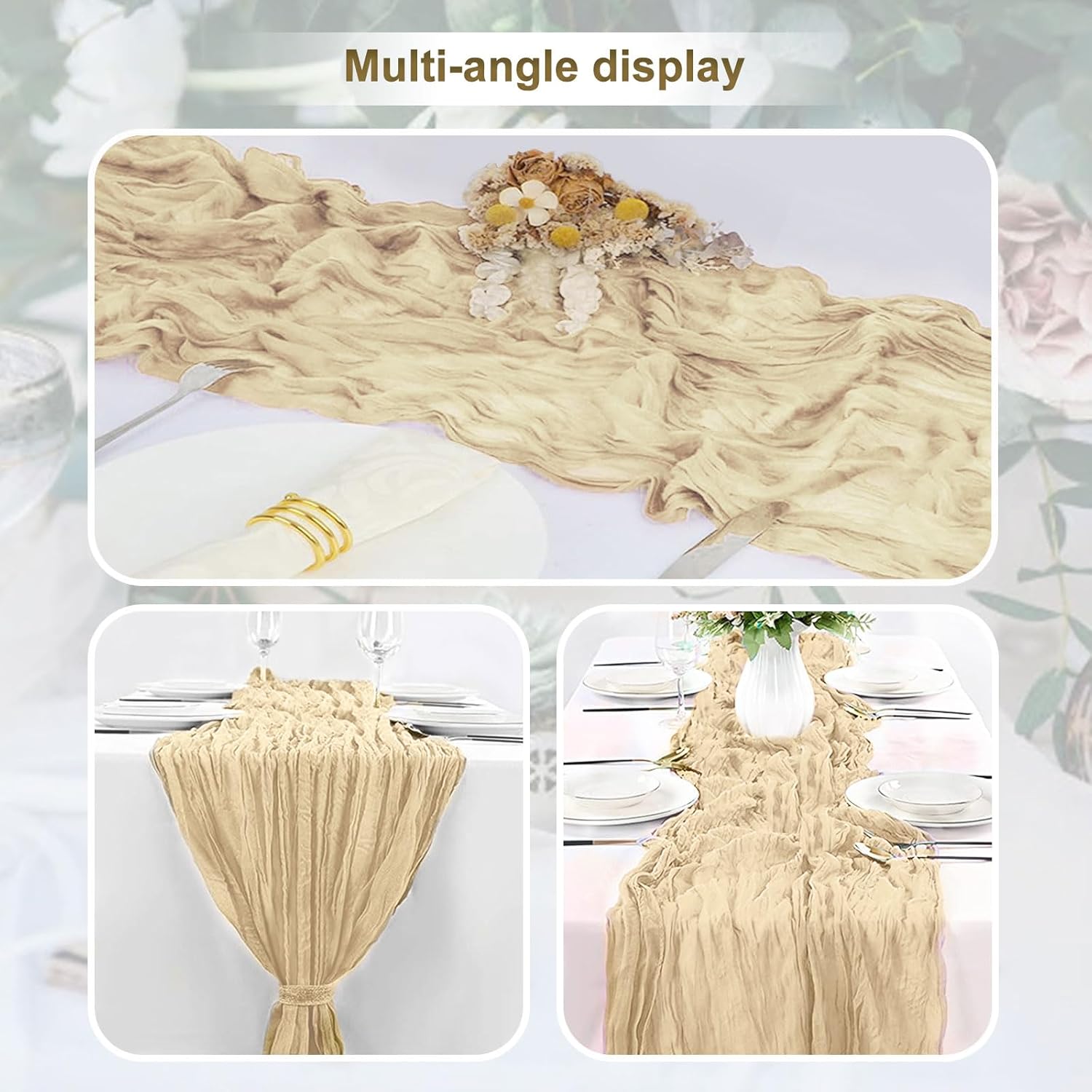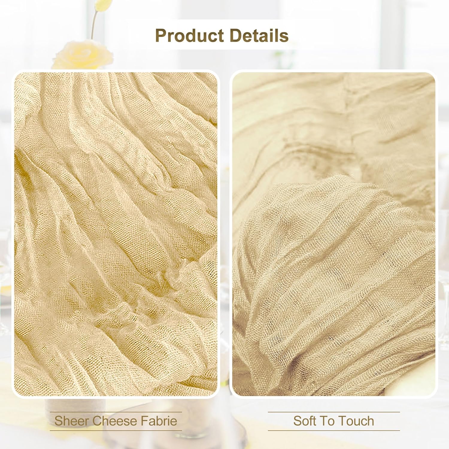 - Premium Materials: Our table runners are crafted from high-quality cheesecloth and gauze. The beige cheesecloth table runner has good softness and breathability, while the gauze table runner offers a delicate and elegant texture. These materials are carefully selected to ensure durability and a luxurious feel, making your table look and feel extraordinary.