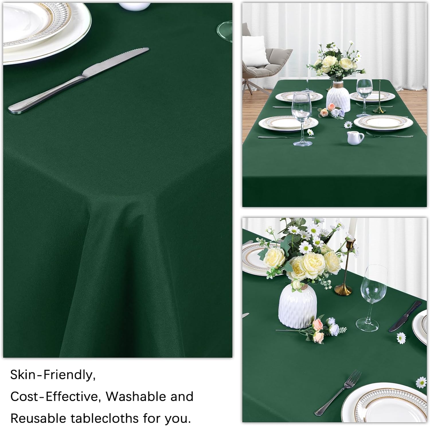 - Premium Quality Material: Our dark green tablecloth rectangle are made of 100% high quality polyester fabric which looks luxurious and elegant, adopting traditional water dyeing process, without any harmful substances and pungent odor. Our hunter green rectangle tablecloth are easier to clean than most green linen tablecloth, providing more convenience for your using and cleaning, perfect to decorate and protect your tables.