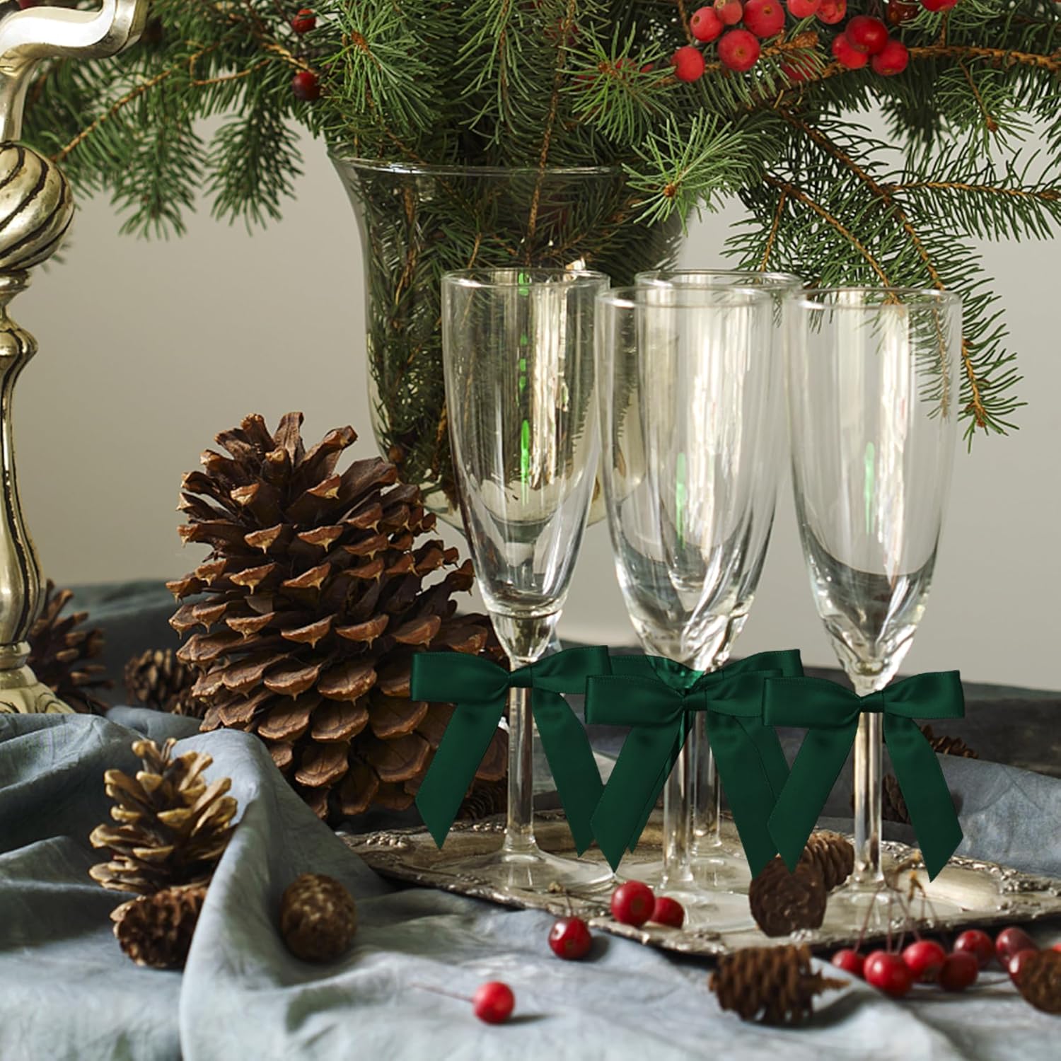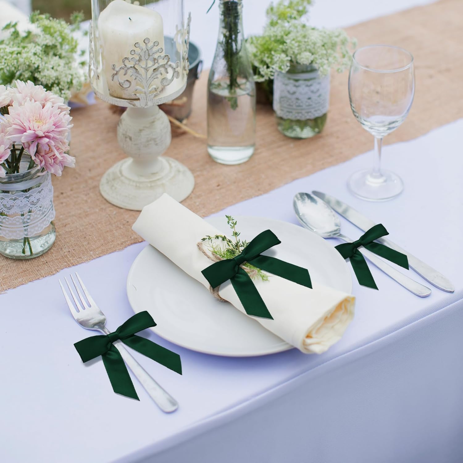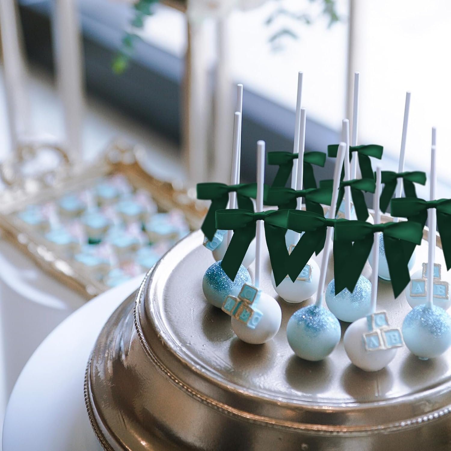50Pcs Hunter Green Twist Tie Bows for Gift Wrapping 2.5" Satin Ribbon Bow for Treat Bags Cake Balloons Birthday Party Favors Wedding Decorations