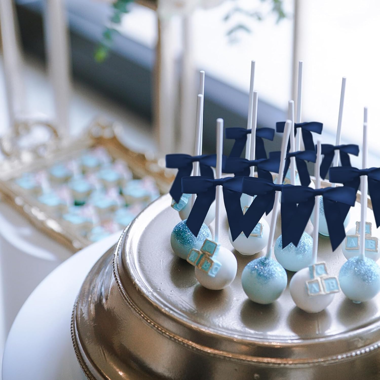 50Pcs Navy Blue Twist Tie Bows for Gift Wrapping 2.5" Satin Ribbon Bow for Treat Bags Cake Balloons Birthday Party Favors Wedding Decorations