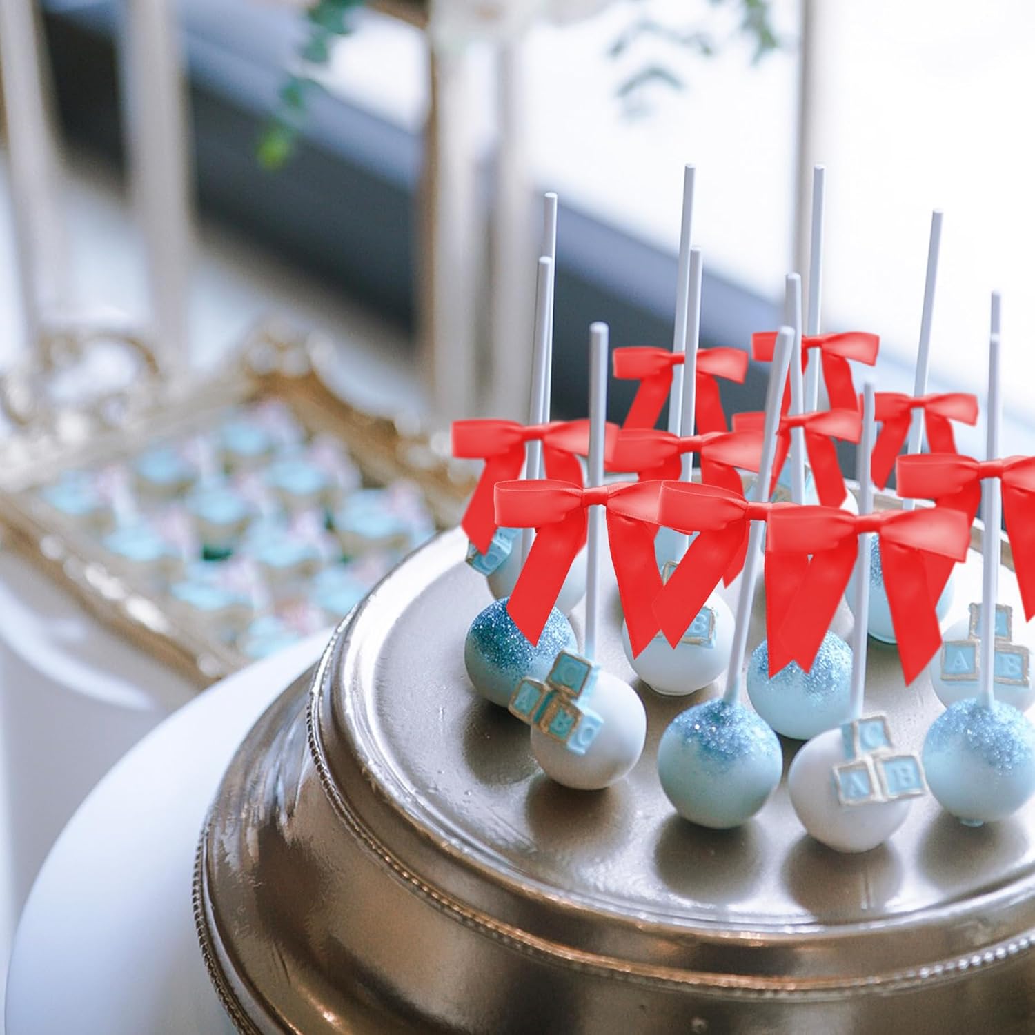 50Pcs Red Twist Tie Bows for Gift Wrapping 2.5" Satin Ribbon Bow for Treat Bags Cake Balloons Birthday Party Favors Wedding Decorations