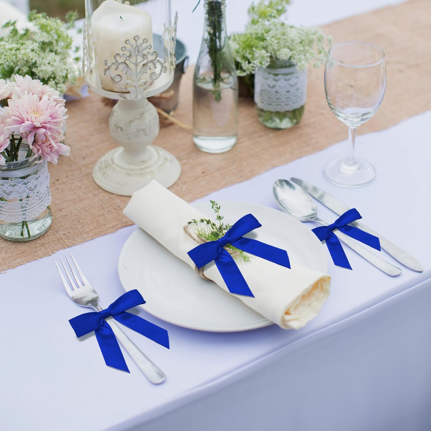 50Pcs Royal Blue Twist Tie Bows for Gift Wrapping 2.5" Satin Ribbon Bow for Treat Bags Balloons Birthday Party Favors Wedding Decorations