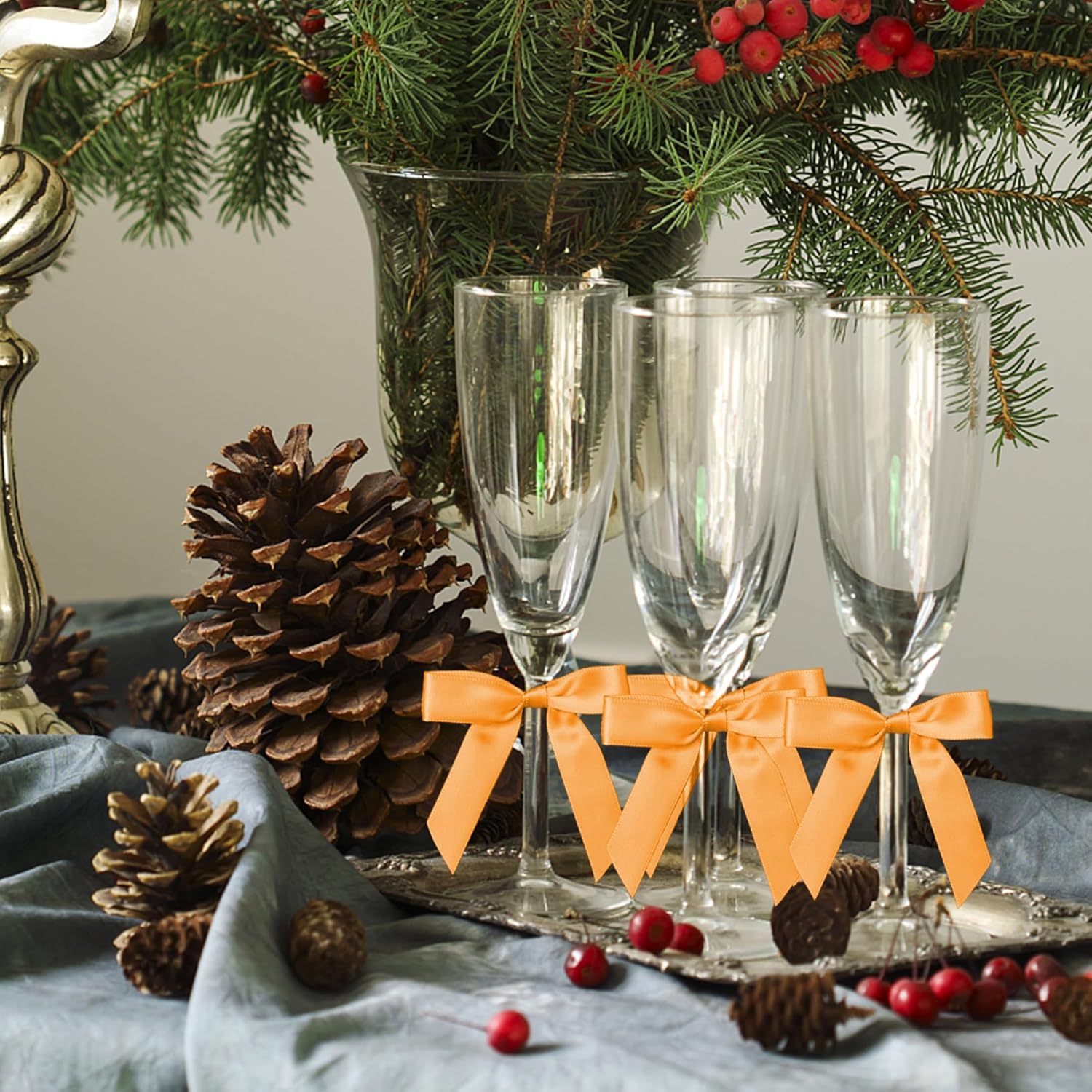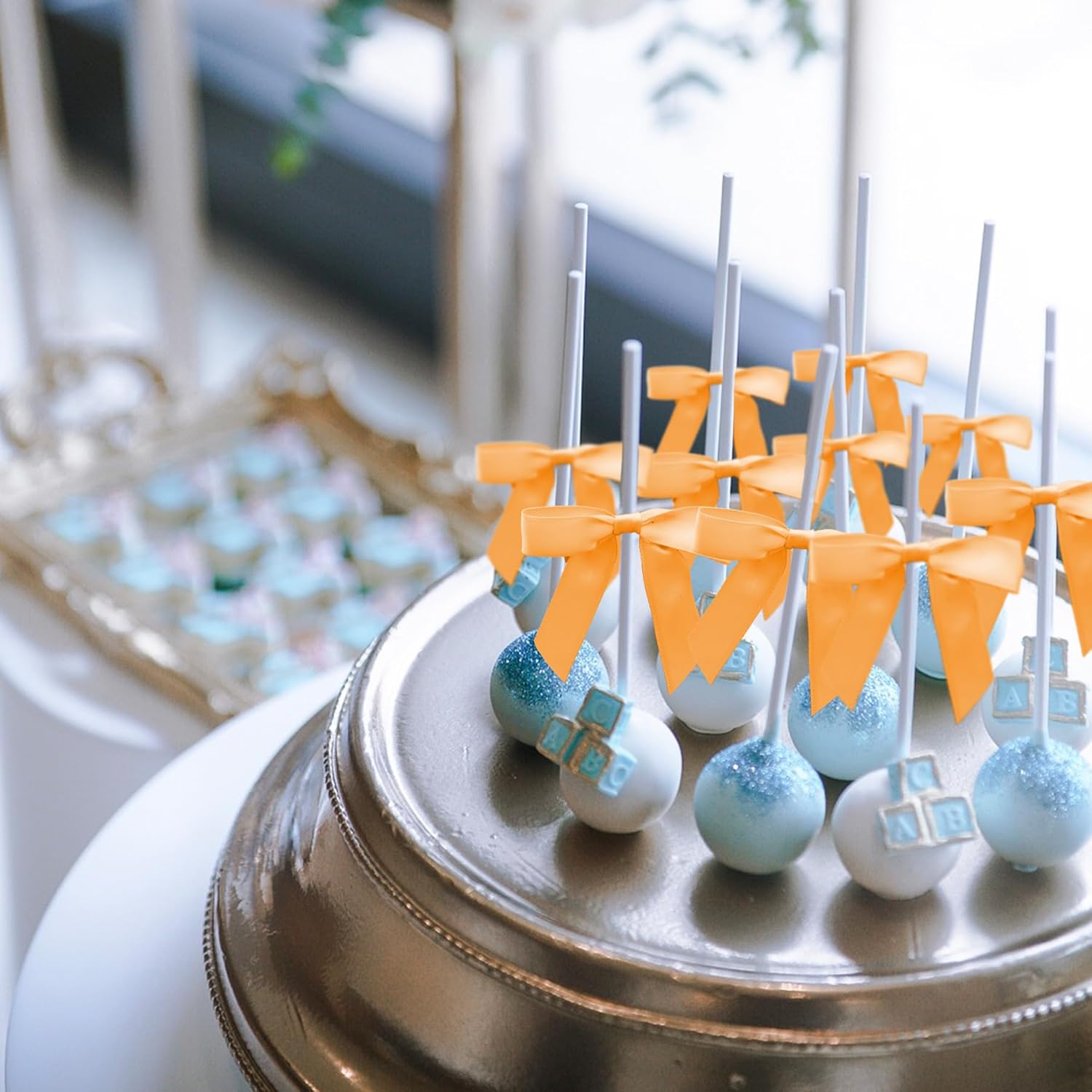 50Pcs Orange Twist Tie Bows for Gift Wrapping 2.5" Satin Ribbon Bow for Treat Bags Balloons Birthday Party Favors Wedding Decorations