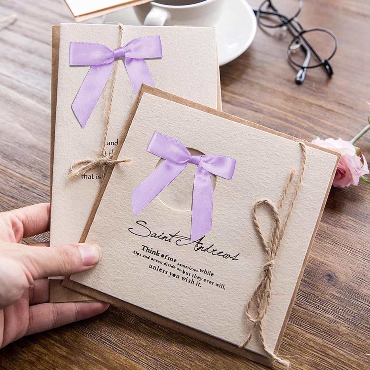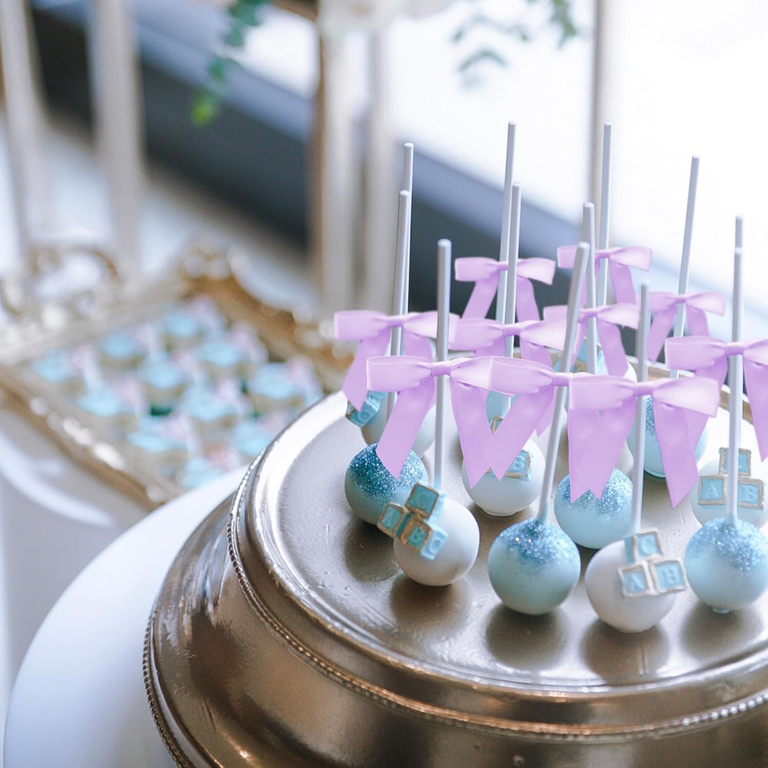 50Pcs Lilac Twist Tie Bows for Gift Wrapping 2.5" Satin Ribbon Bow for Treat Bags Cake Balloons Birthday Party Favors Wedding Decorations