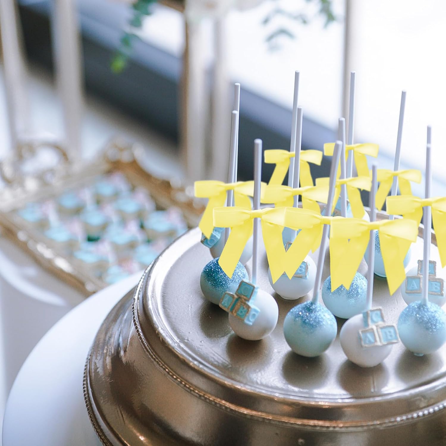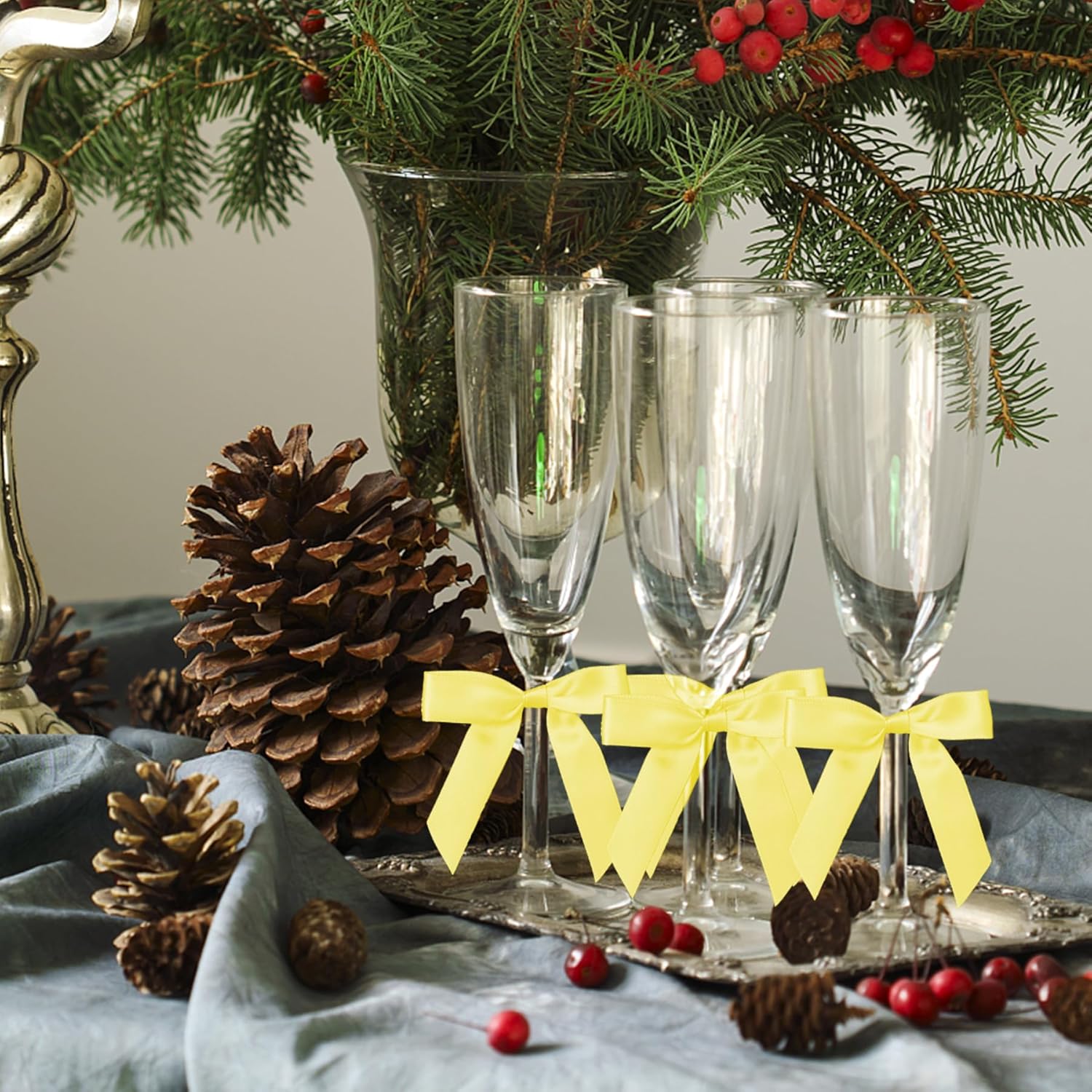 50Pcs Yellow Twist Tie Bows for Gift Wrapping 2.5" Satin Ribbon Bow for Treat Bags Cake Balloons Birthday Party Favors Wedding Decorations