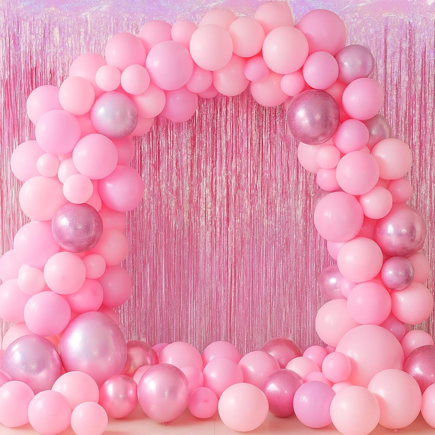 - Premium Quality: Crafted from shiny PET tinsel, these pink fringe curtains are designed to be light weight, easy to hang, and resistant to wear and tear. The metallic party streamers reflect light beautifully, creating a mesmerizing visual effect.