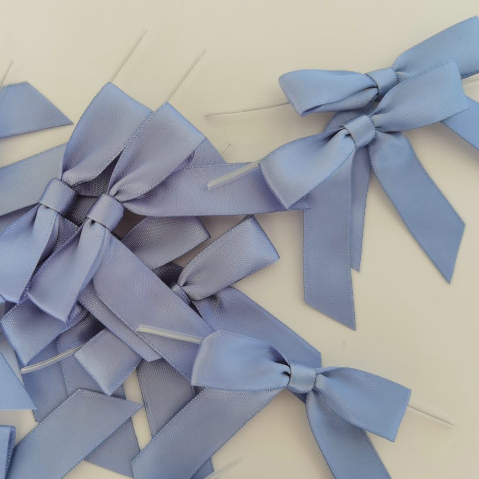 - [ Package Content ] You will receive 50 pieces airy blue smog blue satin bows with twist ties. Saving time from having to make the bows yourself.