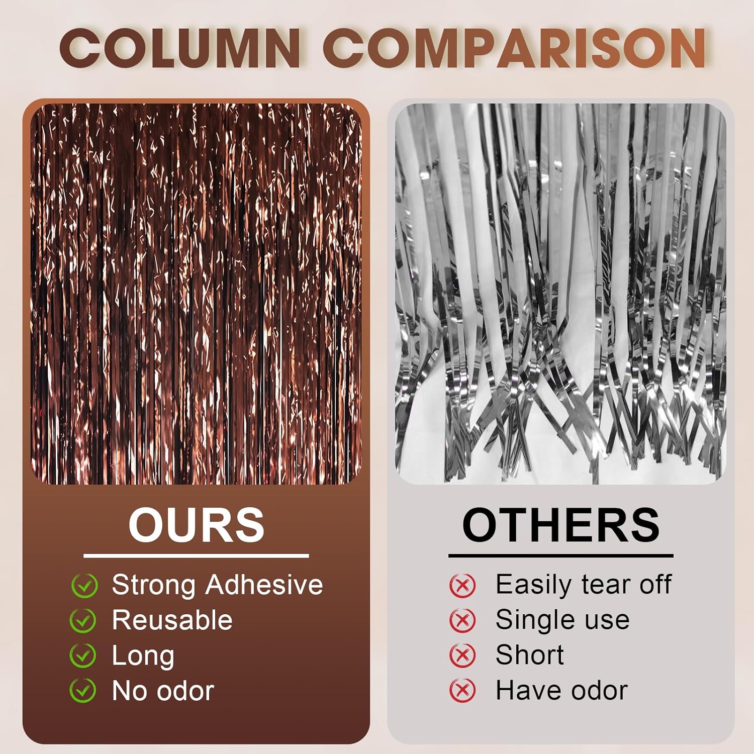 - Premium Quality: Crafted from shiny PET tinsel, these browm fringe curtains are designed to be light weight, easy to hang, and resistant to wear and tear. The metallic party streamers reflect light beautifully, creating a mesmerizing visual effect.