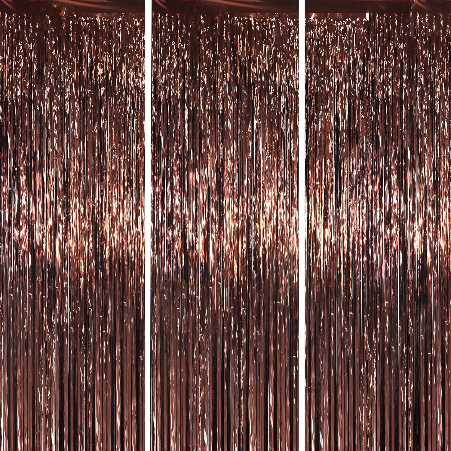 3 Pack 3.3 x 6.6 ft Brown Foil Fringe Backdrop Curtains, Tinsel Streamers Party Decorations, Fringe Backdrop for Birthday, Baby Shower, Gender Reveal, Graduation