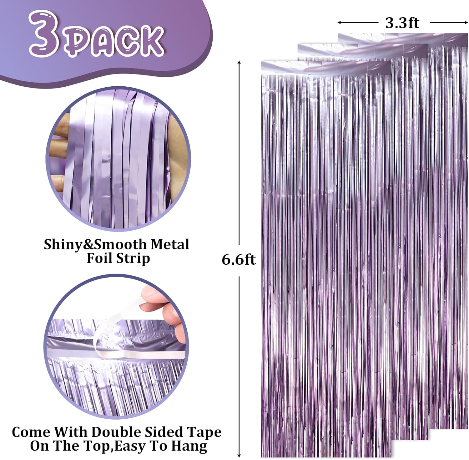- Stunning Decorative Set: You'll receive 3 pcs lavender foil fringe backdrop curtains, each measuring 3.28 ft (wide)Γ6.56 ft (drop). Enough length foil fringe curtains backdrops are perfect for the door or wall to create an impressive decoration