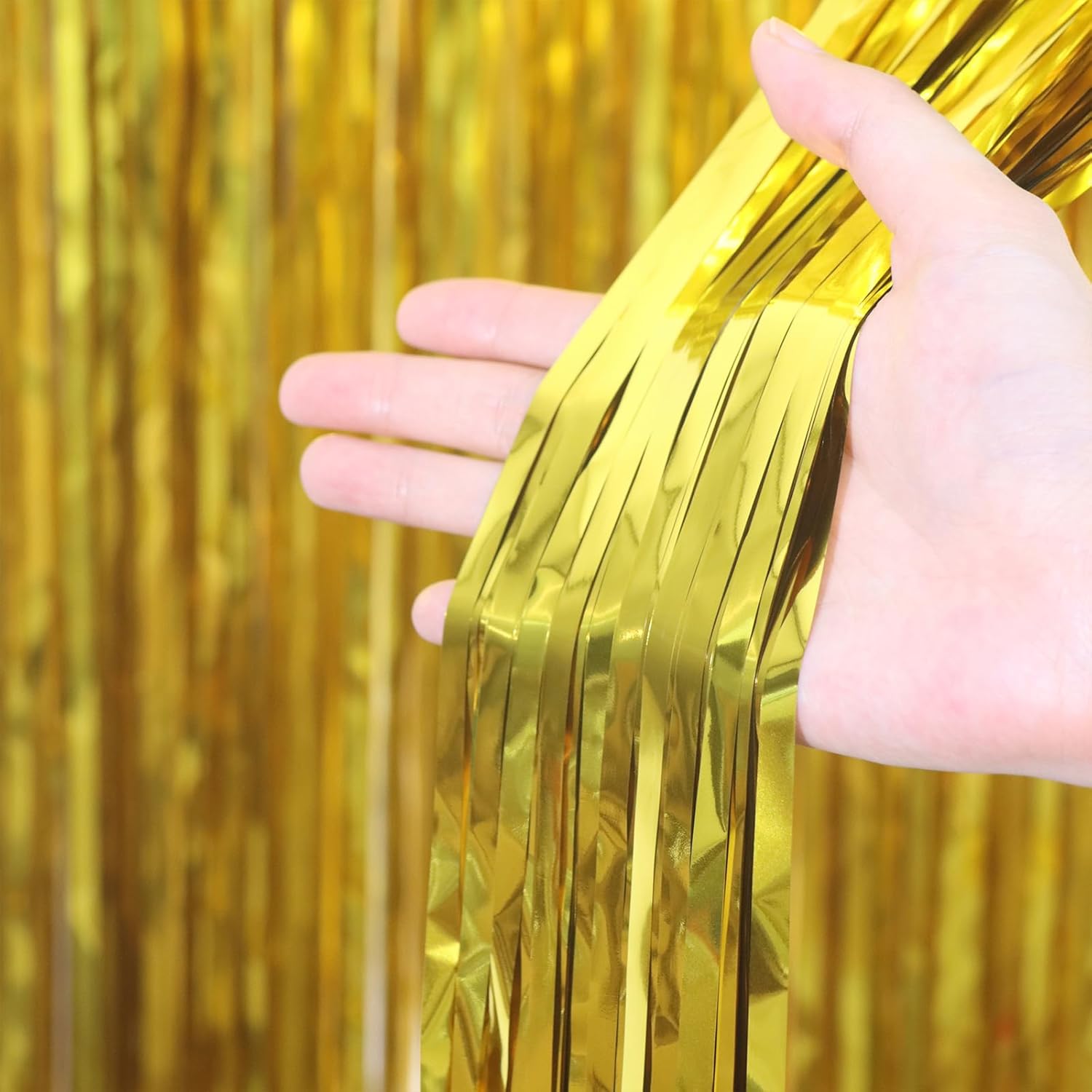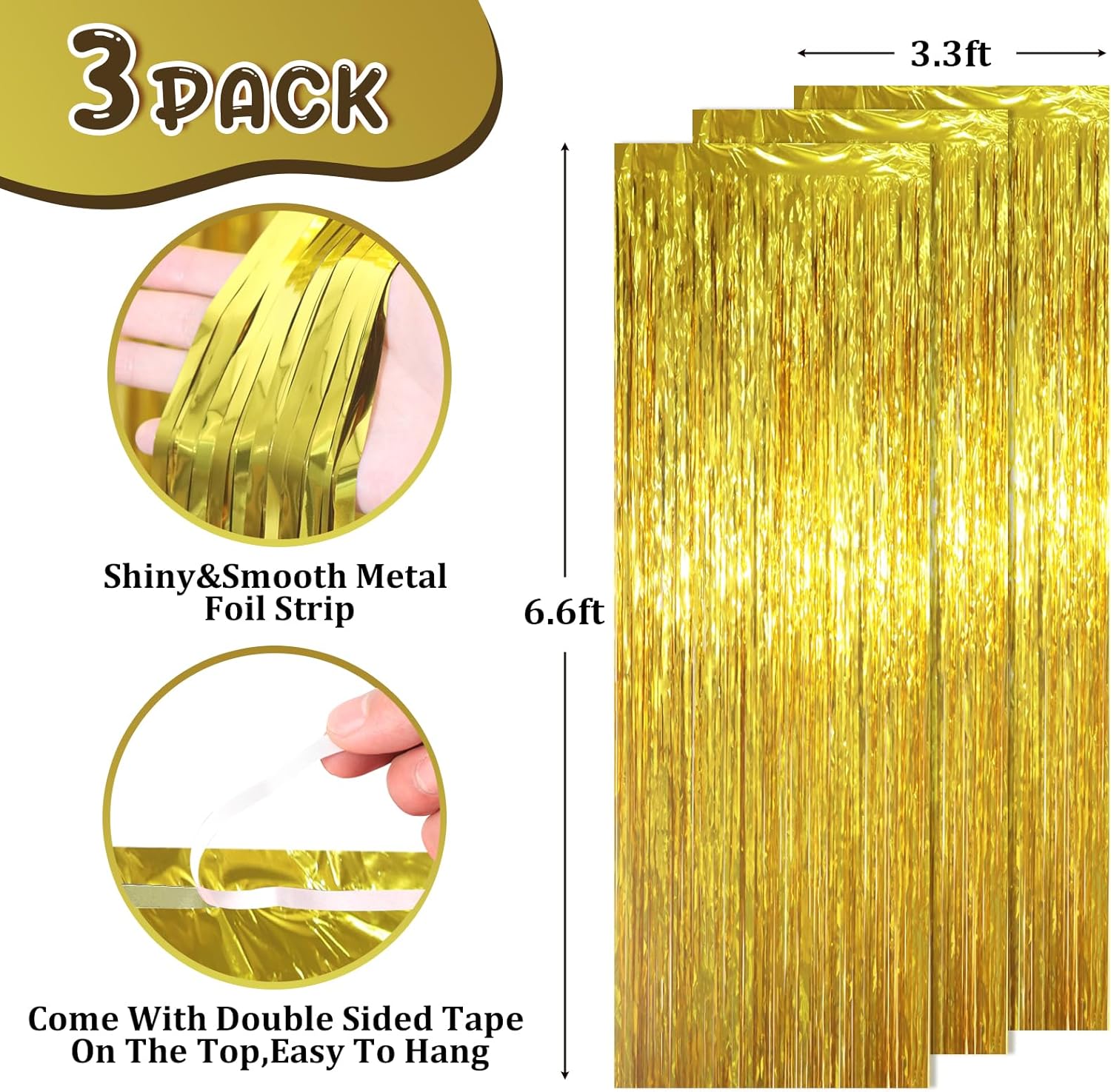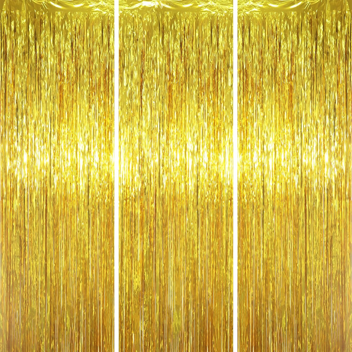 - Stunning Decorative Set: You'll receive 3 pcs gold foil fringe backdrop curtains, each measuring 3.28 ft (wide)Γ6.56 ft (drop). Enough length foil fringe curtains backdrops are perfect for the door or wall to create an impressive decoration