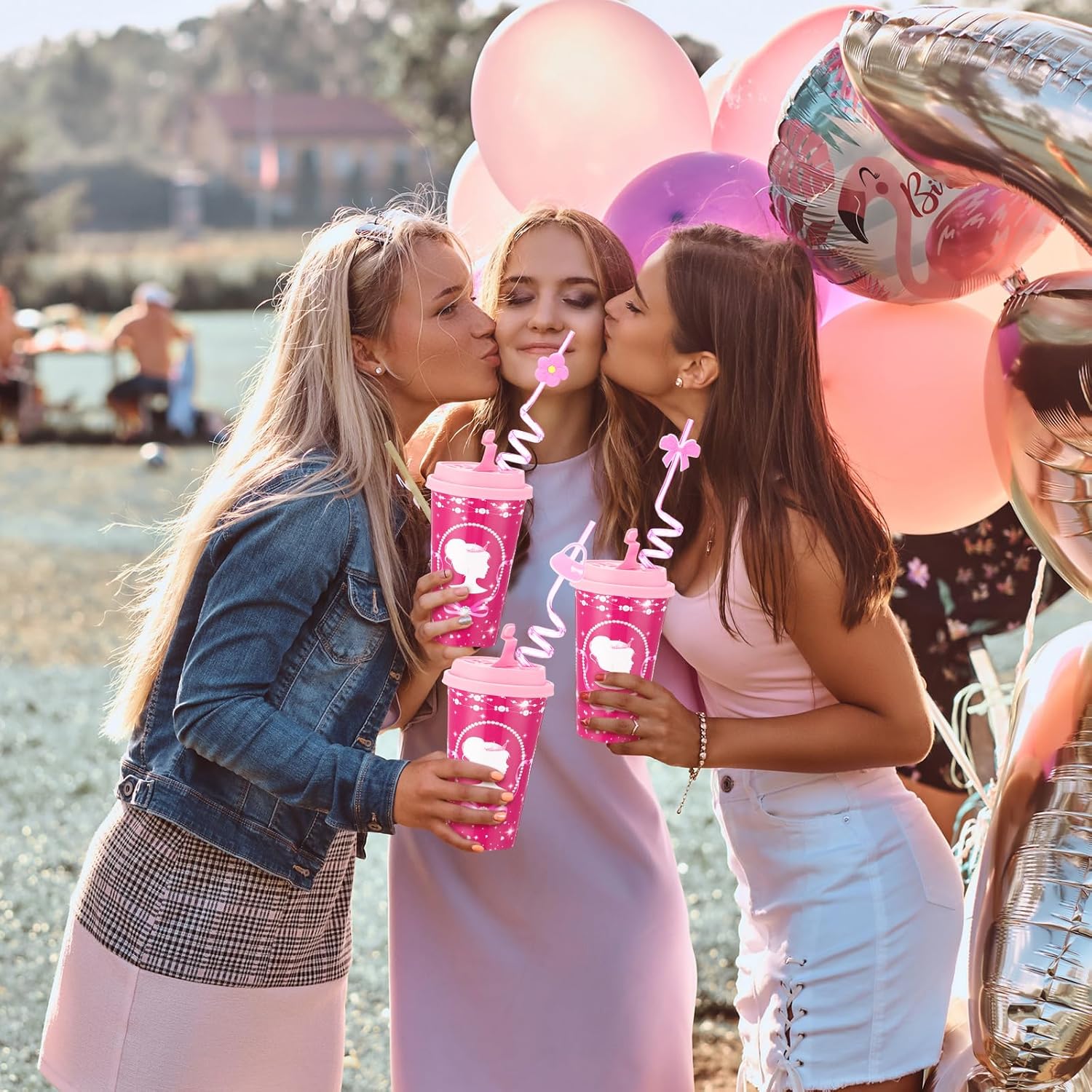 - Exquisite princess design: Our product design style is pink princess, the whole cup body is an elegant and lovely princess head, surrounded by flowing ribbons, the oval pearl frame seems to be in it, the upper and lower designs are flashing lights, dazzling, the straws are all rose red, there are 8 different styles of straws, they are cute and charming, add a touch of elegance to your party, suitable for bachelor parties, birthday parties, baby showers or leisurely weekend gatherings