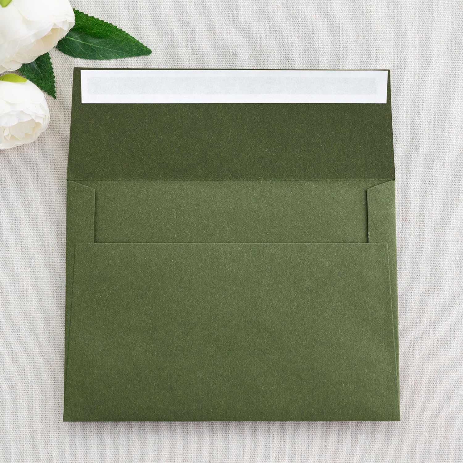 PONATIA 50 PCS 5x7 Envelopes, Olive Green Self- Adhesive A7 Envelopes for Weddings, Invitation Cards, Photos, Postcards, Greeting Cards Mailing, Baby Shower, Graduation, Christmas Gift Cards
