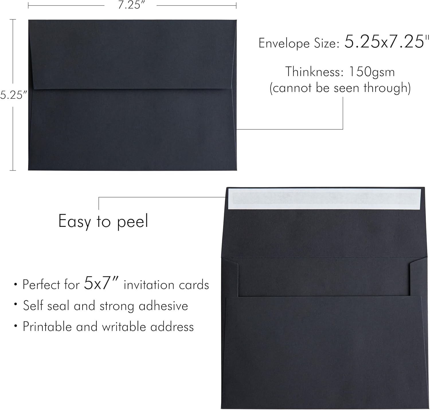 PONATIA 50 Pieces 5x7 Envelopes, A7 Envelopes Self Seal for Weddings, Invitation Cards, Photos, Postcards, Greeting Cards Mailing, Baby Shower, Graduation, Christmas Gift Cards (Black)