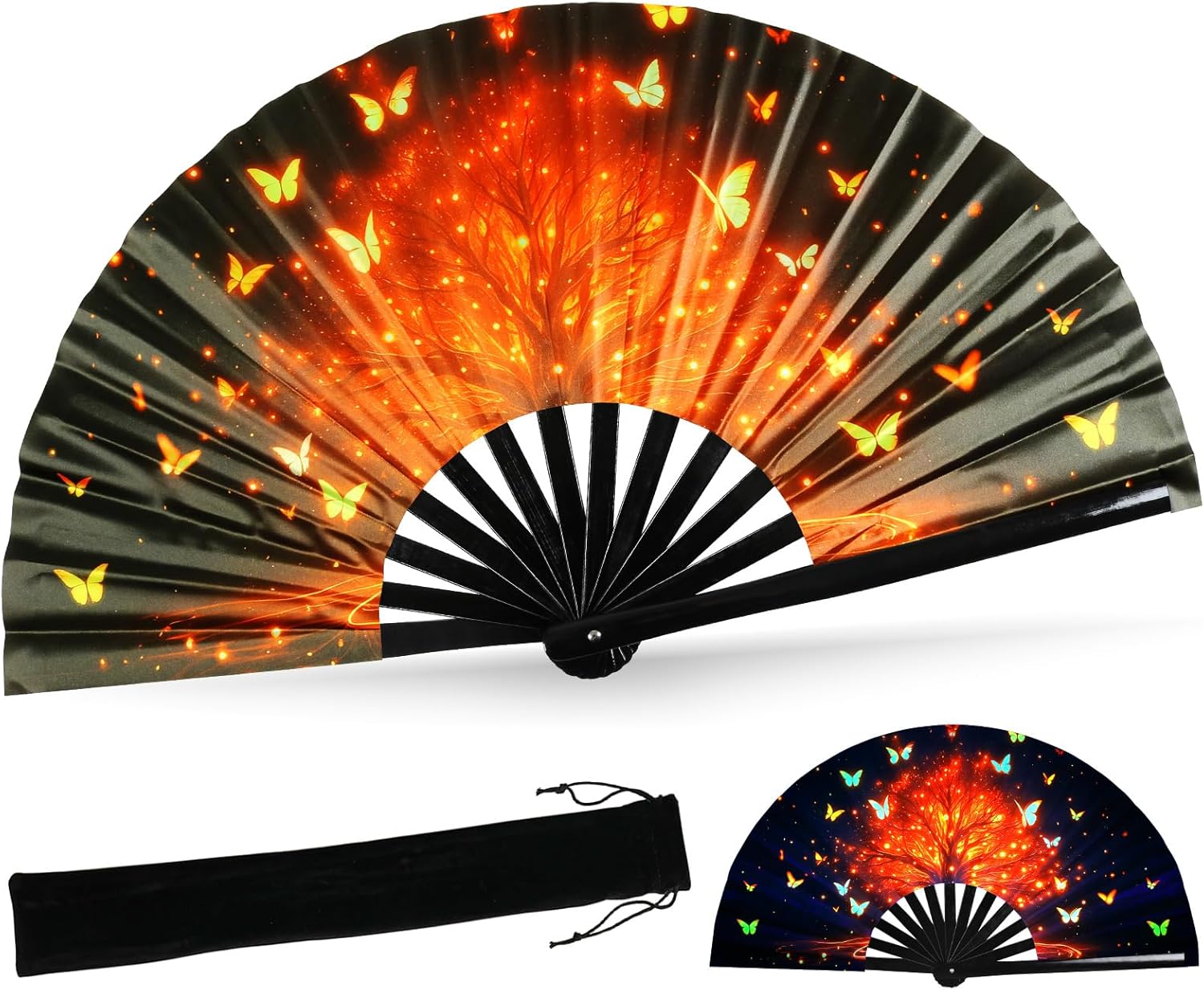 - WIDE RANGE OF USES – The large folding handheld fan is a fancy accessory to rave parties, musical festivals and carnivals like EDC, UMF, Electric Zoo, Sensation, concerts, shows as well as a large fan to cool you down and avoid sweating. The folding dancing fan with high resolution printing is also a nice decoration at any place