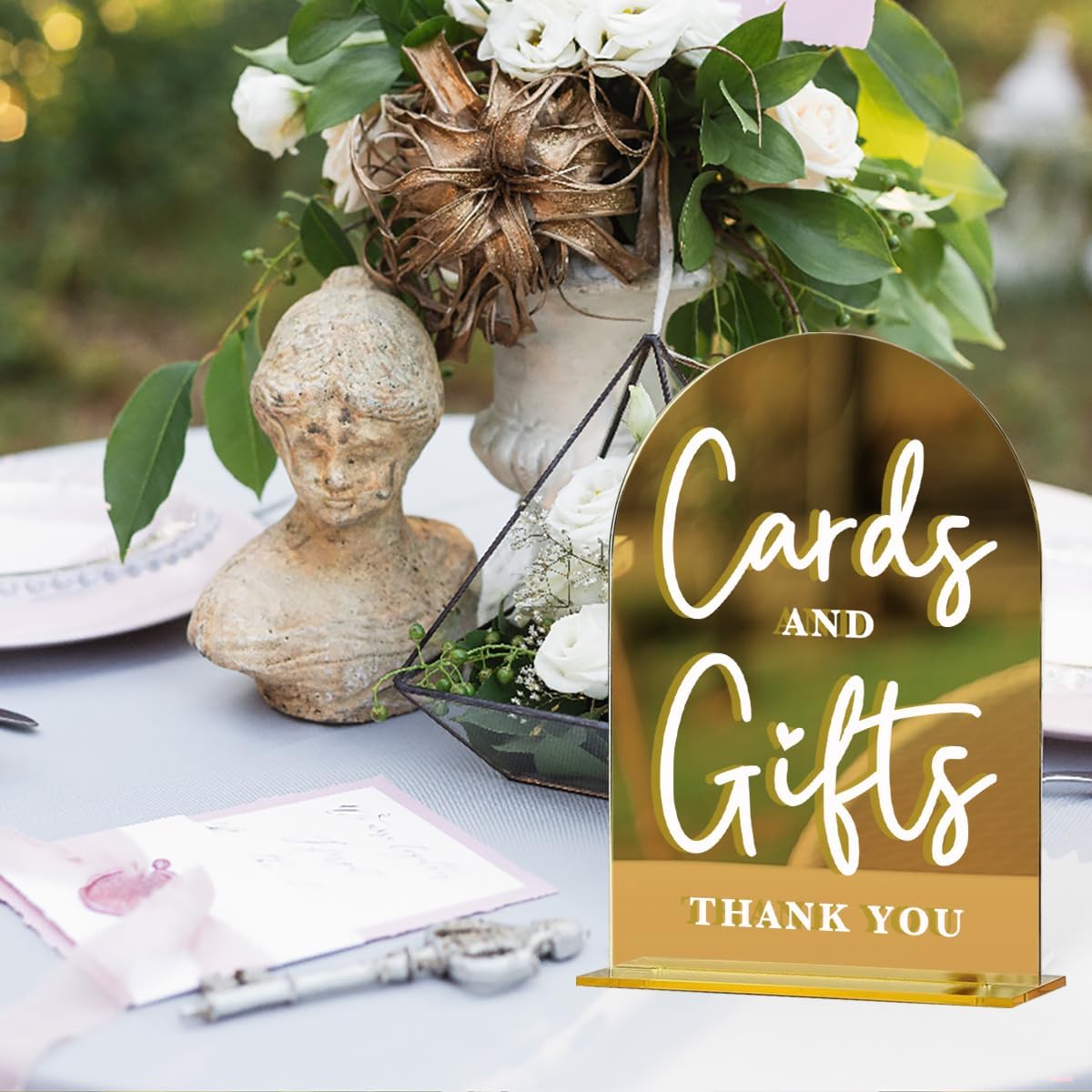 Acrylic Wedding Sign, Bridal Shower Decorations, Cards and Gifts Sign for Ceremony, Modern Font Table Signs, Gold Mirror Arched Acrylic Tabletop Signs for Wedding Reception and Event Party