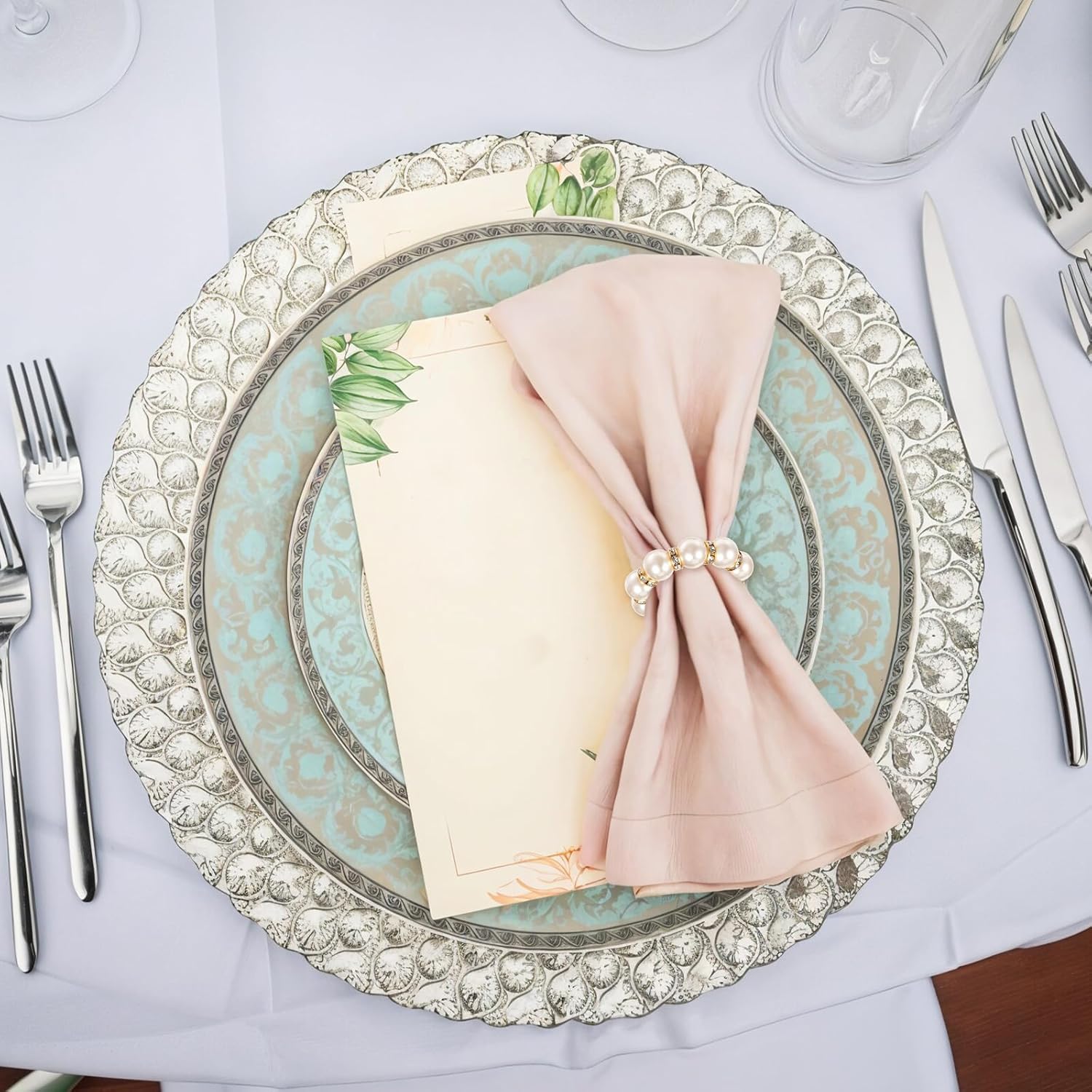 - HIGH-QUALITY MATERIAL: The Table Napkin Rings Set are made of high-quality metal and embellished with imitation pearls. Not only are they durable, they also retain their shine and beauty for a long time, and will not fade no matter how many times they are used.
