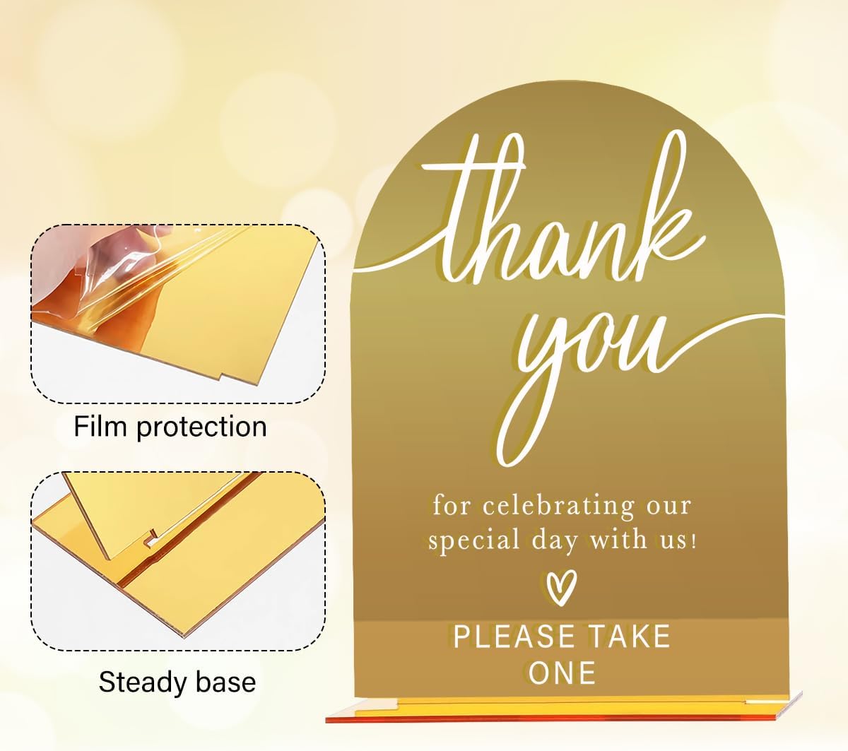 Acrylic Wedding Sign, Bridal Shower Decorations, Thank You Sign for Ceremony, Modern Font Table Signs, Gold Mirror Arched Acrylic Tabletop Signs for Wedding Reception and Event Party