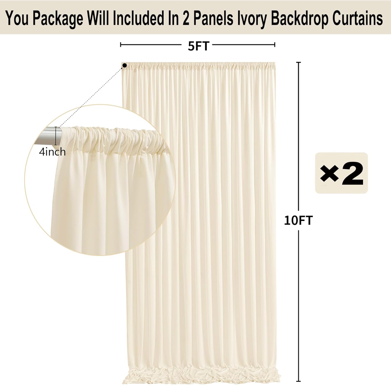 - 10ftΓ10ft Ivory Backdrop Curtains for Parties- Your package will included in 2 panels ivory curtains backdrop, each panel 5ft(width)Γ10ft(Height) ivory curtains for backdrop, total 30ftΓ10ft backdrop curtains. cortinas para fiestas decoracion.
