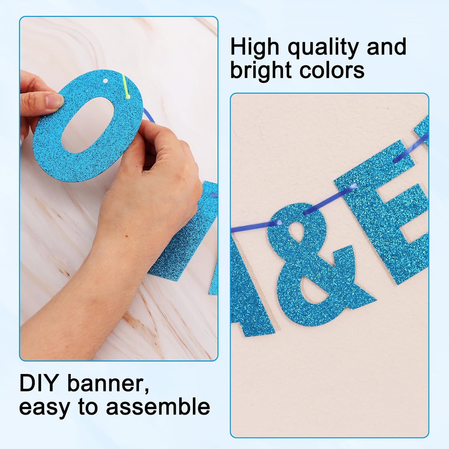 BEISHIDA 116 PCS Glitter Sky Blue DIY Letter Banner Kit Make Your Own Banner,Including 111 Letters and Numbers 3 Rope and 2 Threading Device,Customized for Birthday Graduation Wedding Party Decor