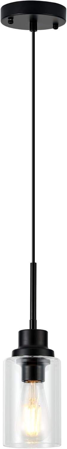 Island Lights for Kitchen,Modern Black Farmhouse Clear Glass Cylinder Pendant Light Fixture,Mini Pendant Lighting for Kitchen Island