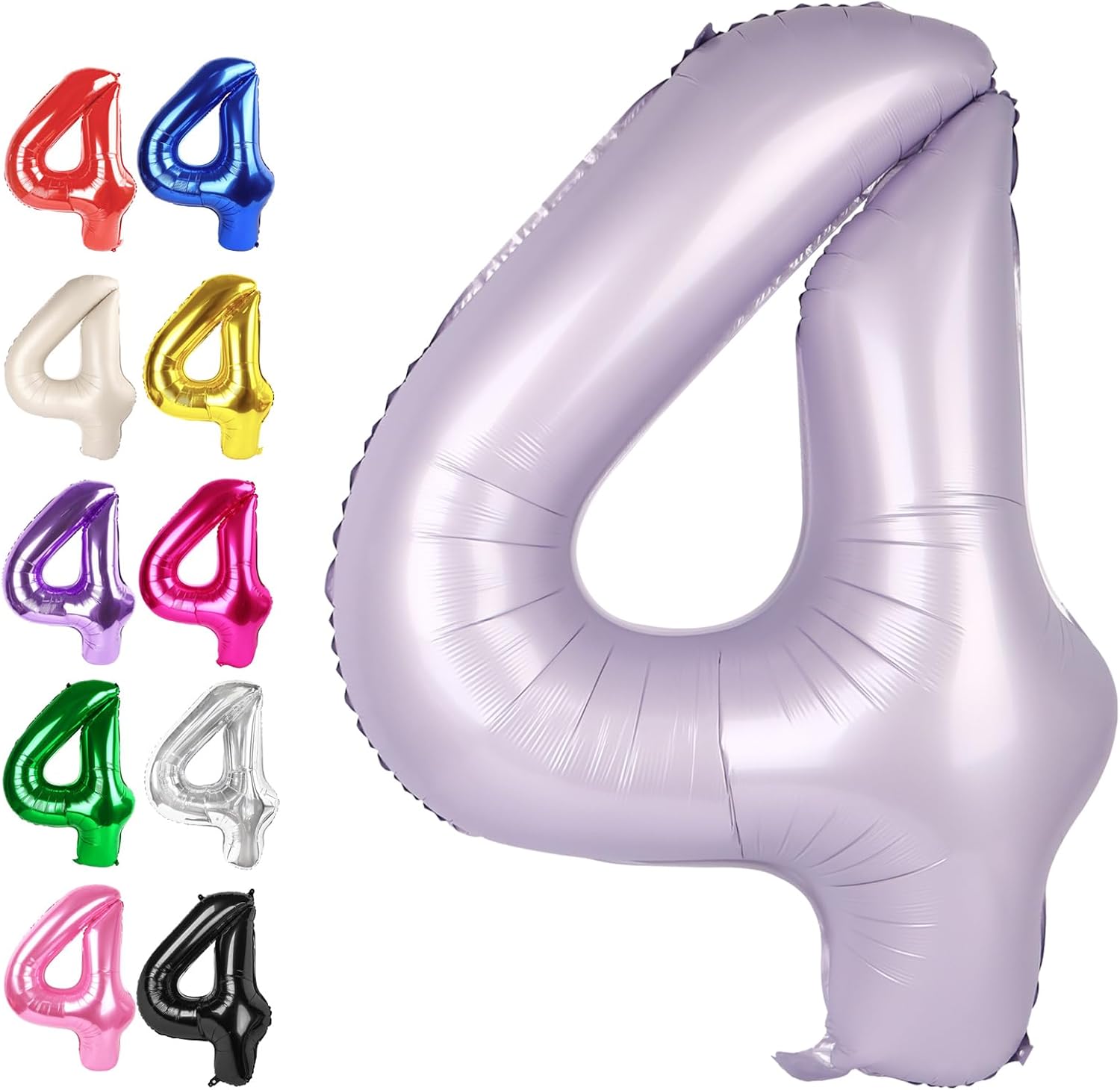 - 1.Noble Romantic Lilac Number Balloons:You will receive an uninflated 40 inch 4 lavender number balloon.Balloons are always the best statement of romance surprise. Big four balloon symbolize eternal magical,adding glamour to lilac birthday parties. Elegant lavender and huge size make lilac number 4 balloon a highlight of special parties. Choose one or more numbers from 0-9 number balloon, and use 4 14 24 34 40 44 54 64 84 94 birthday balloons to create a lively charming party!