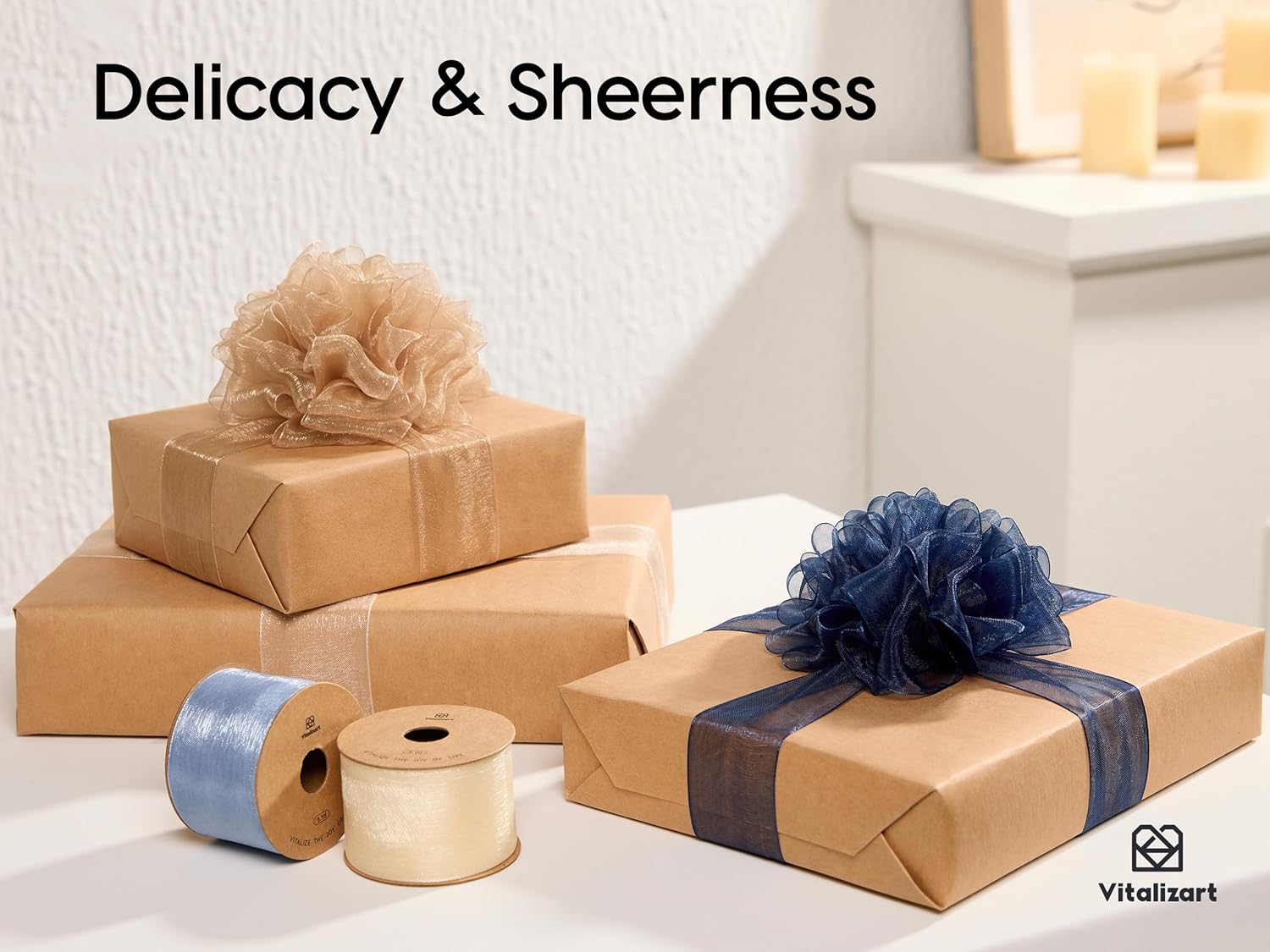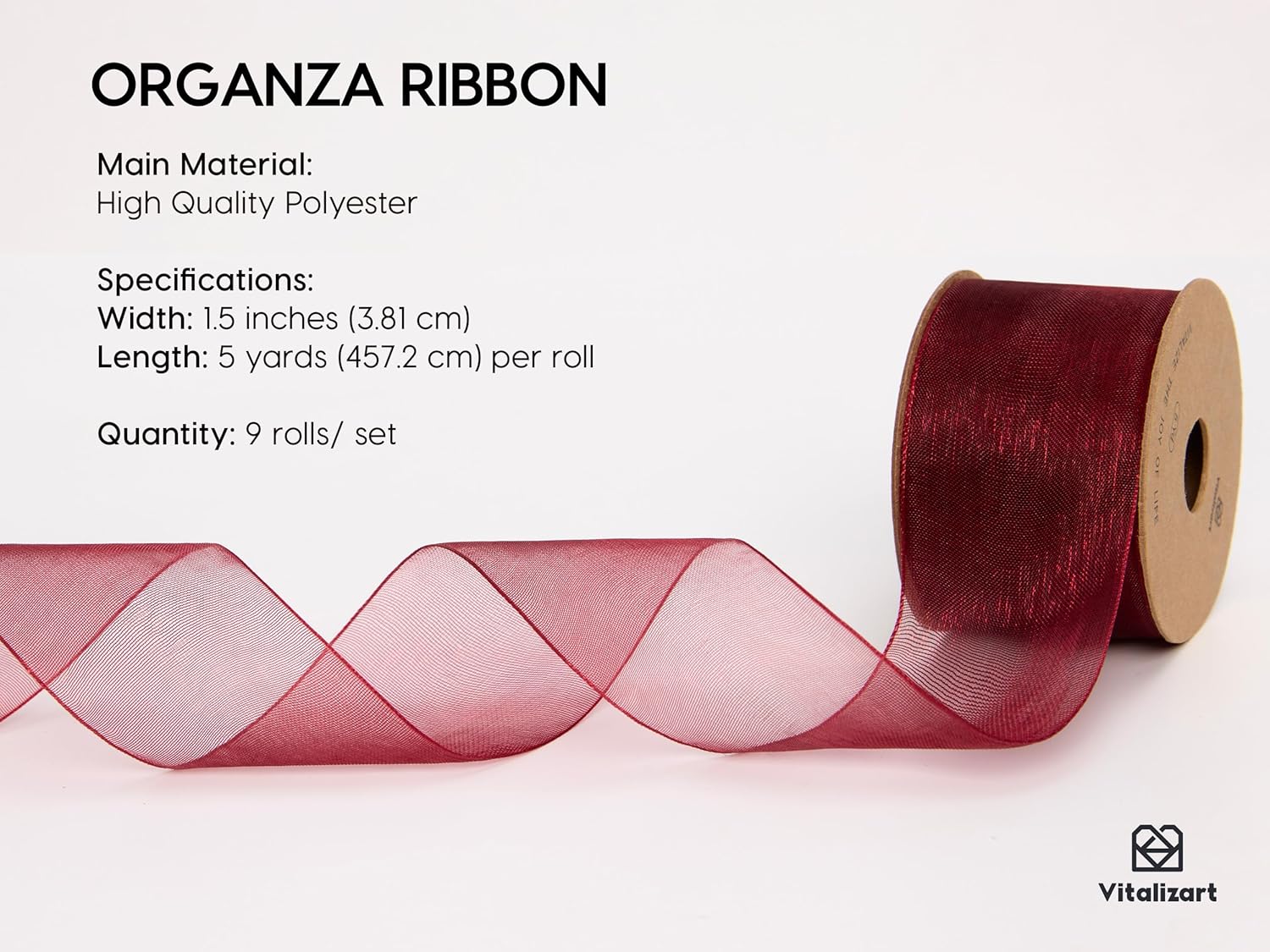 Vitalizart 1.5" x 45 Yards Organza Ribbon Pastel Color 9 Rolls x 5 Yd Sheer Ribbon for Gift Wrapping Crafts Christmas Tree Bows Wedding Invitations Wreaths Party Decor Bouquet DIY Projects