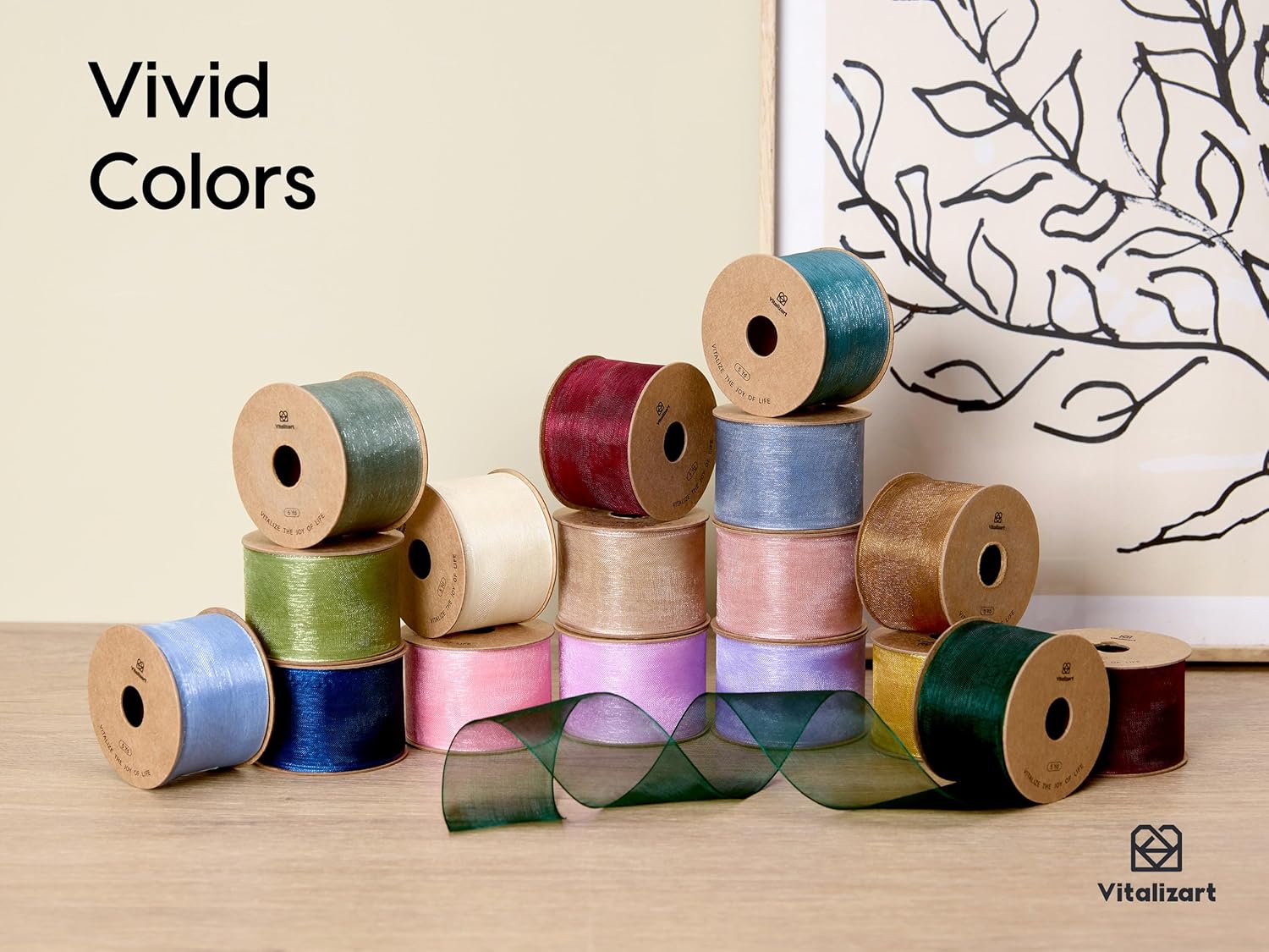 Vitalizart 1.5" x 45 Yards Organza Ribbon Set 9 Rolls x 5 Yd Sheer Ribbon for Gift Wrapping Crafts Christmas Tree Bows Wedding Invitations Wreaths Party Decor Bouquet DIY Projects (Mixed Colors)