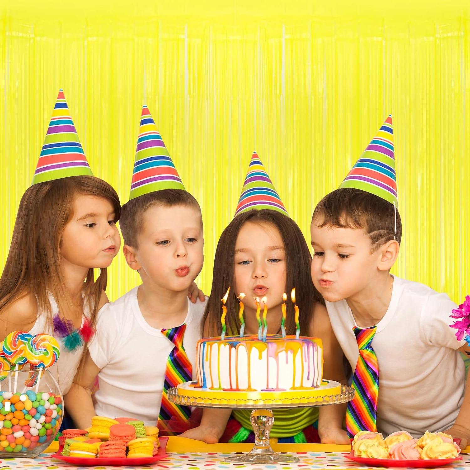 10 Pack Yellow Foil Curtain Backdrop 3.2ft x 8.2ft Macaron Tinsel Foil Fringe Curtains Streamer Photo Booth Backdrop for Birthday Party Baby Shower Engagement Wedding Holiday Decor (Macaron Yellow)