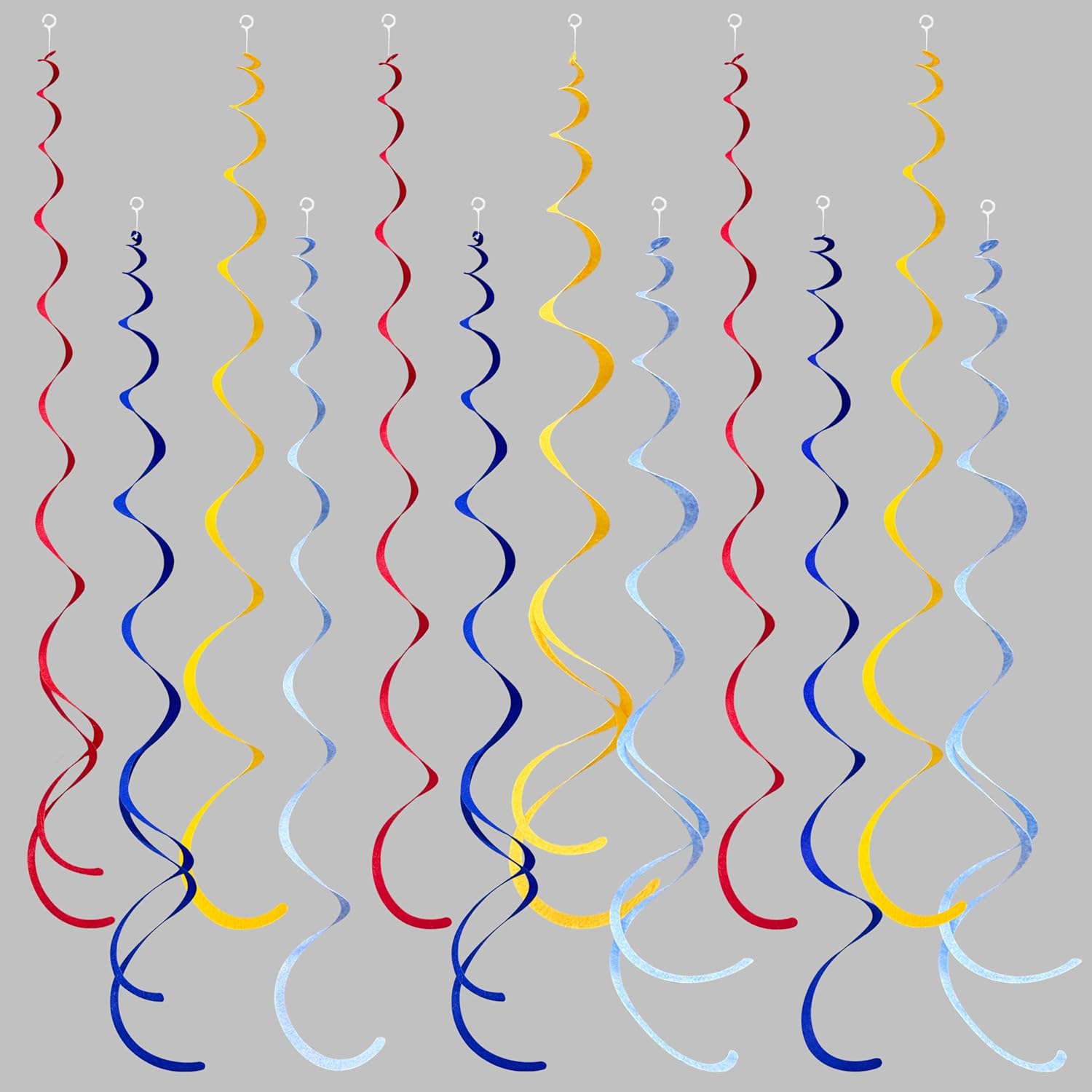 • High Quality - Our colorful felt swirl hanging decorations kit are made of high-quality felt in carnival color(Red. Royal Blue. Yellow. Sky Blue),Soft texture and safer than PVC swirls.durable and reusable.and the color is more brilliant than general PVC whirls.