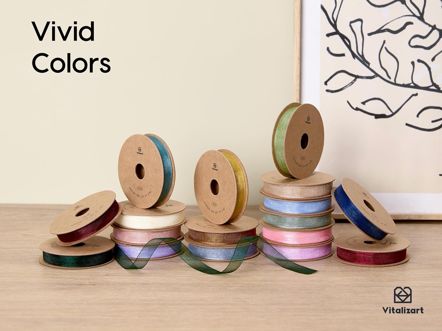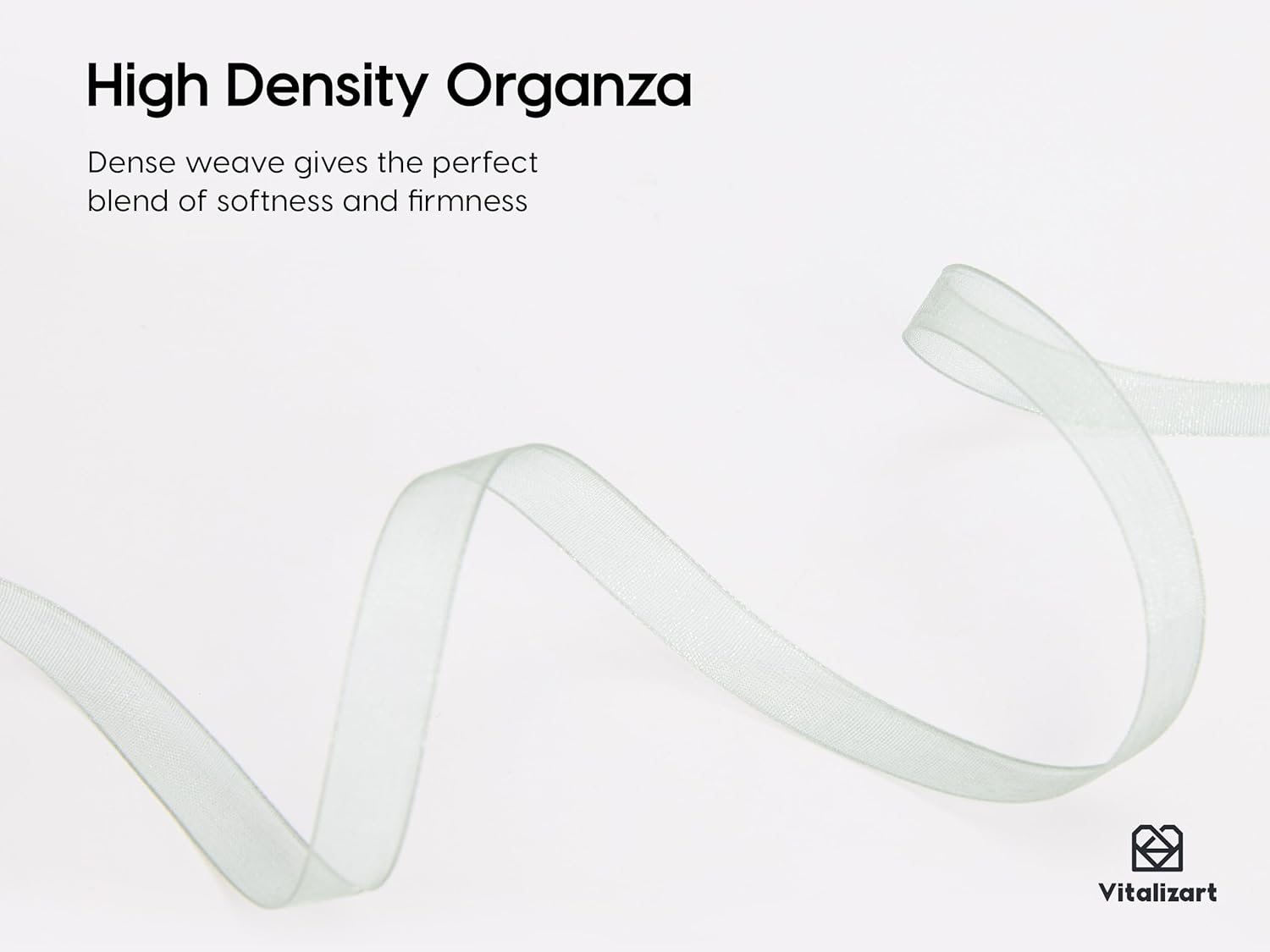 Vitalizart Organza Ribbon 3/8" x 30 Yd Cream White Rose Gold & Dusty Green Sheer Ribbons for Gift Wrapping Crafts Christmas Party Decor Bows Wedding Invitations Wreaths Bouquet