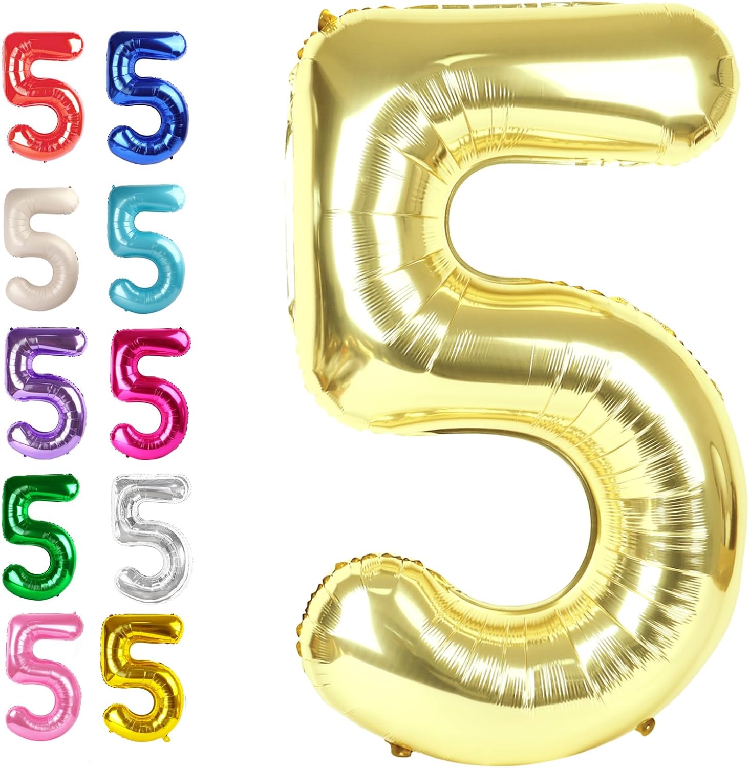 - 1.Noble Romantic Champagne Gold Number Balloons:You will receive an uninflated 40 inch light gold number 5 balloon.Balloons are always the best statement of romance surprise.Gold happy birthday balloons symbolize eternal magical,adding glamour to light gold birthday parties.Elegant gold and huge size make light gold balloon birthday a highlight of special parties.Choose one or more numbers from 0-9 numberballoon,and use 5th 5 15 25 35 45 55 65 75 85 95 balloons number to create a lively party!