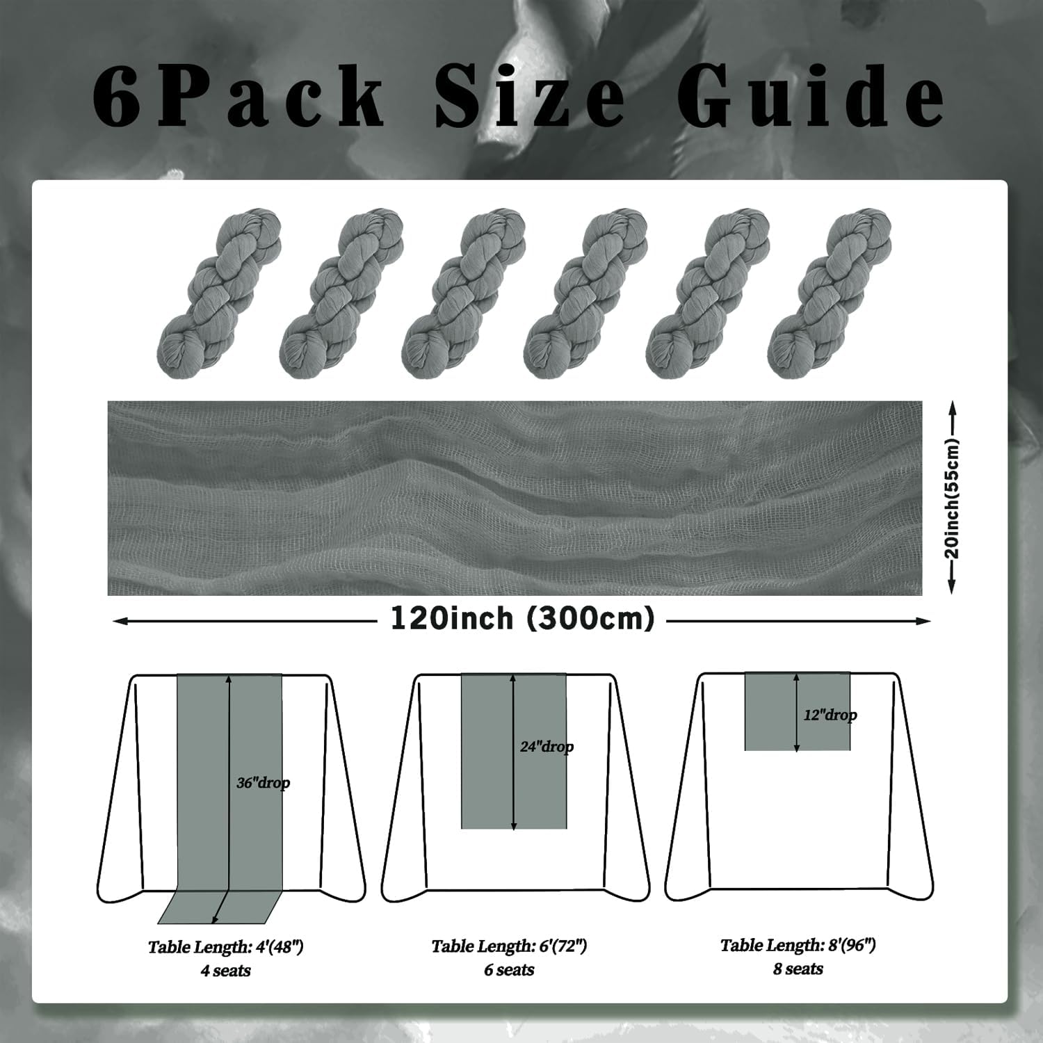 6 Pack Gray 10FT Cheesecloth Table Runner Rustic Gauze Fabric Cheese Cloth Table Runner for Wedding Bridal Baby Shower Table Decor 20 x 120 Inch Long Boho Sheer Birthday Party Table Decorations