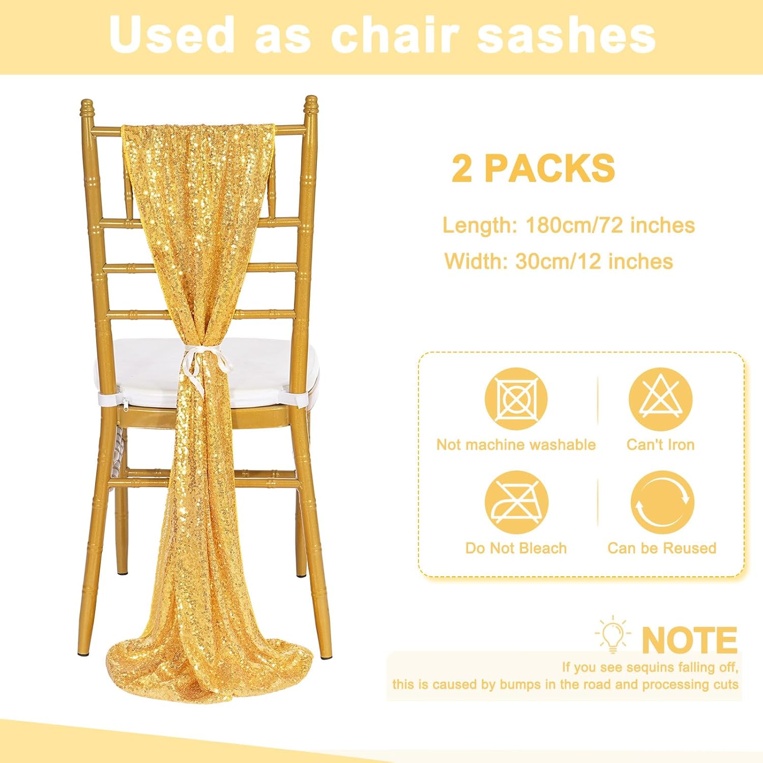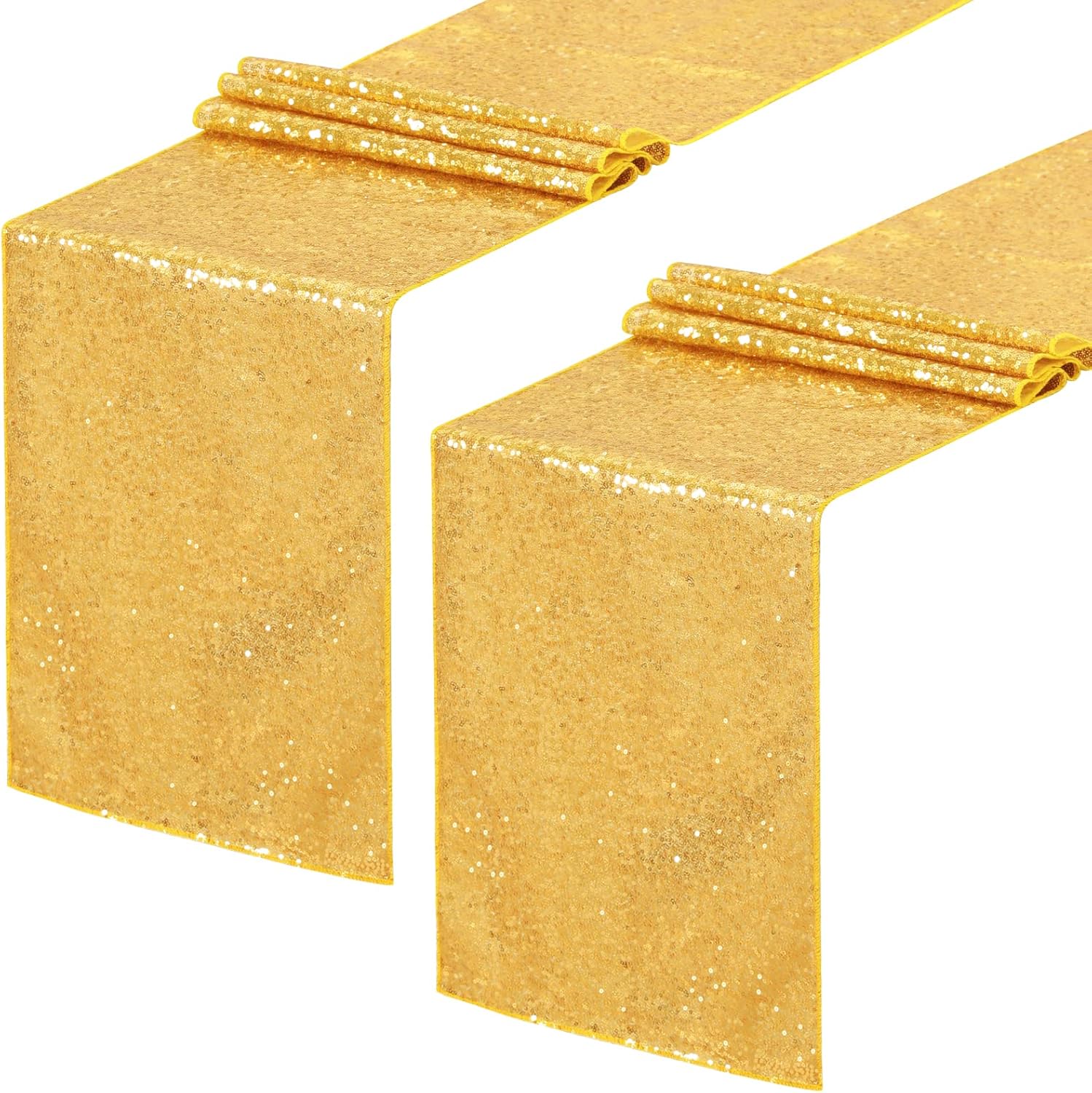 - Gold Sequin Table Runners: Package includes 2 pack of gold table runners for your daily use. Measured about 12x72 inches(30x180cm). Great ideal for wedding table decorations for the receptionthe sequin table runners is long enough to fit rectangle and round tables that can seat 6 to 10 people.