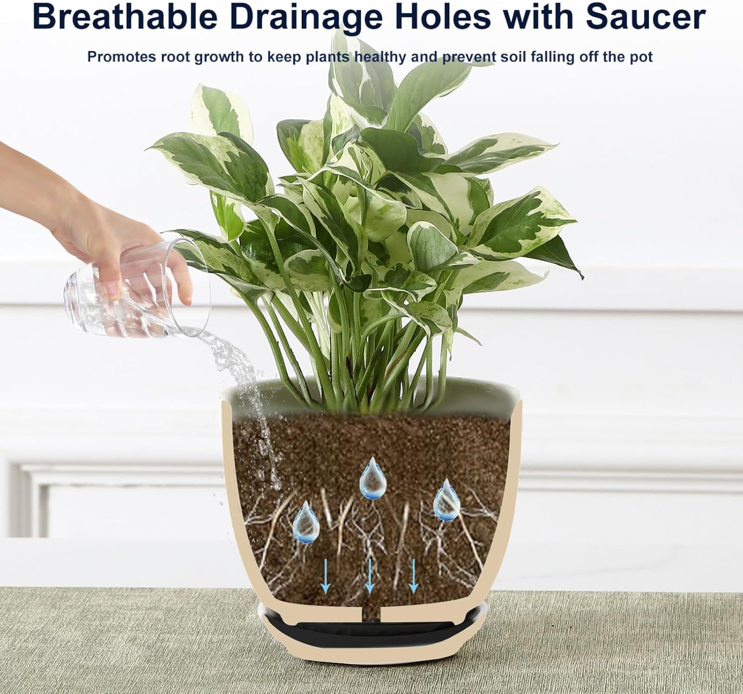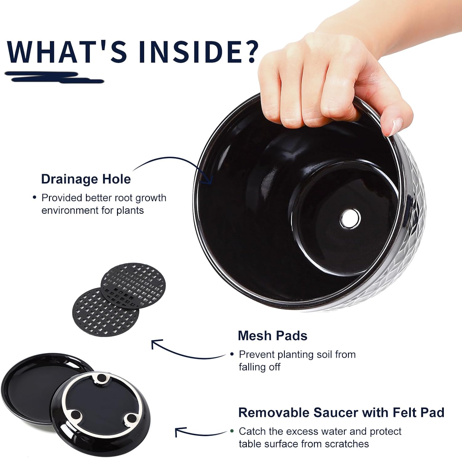 - Helps Plants Thrive: Our indoor plant pots include mesh pads and drip trays; The saucers catch excess water, while the mesh pads prevent soil from clogging the drainage holes and keep them clear; This setup improves drainage and root health—perfect for beginners who want their plants to grow strong and healthy