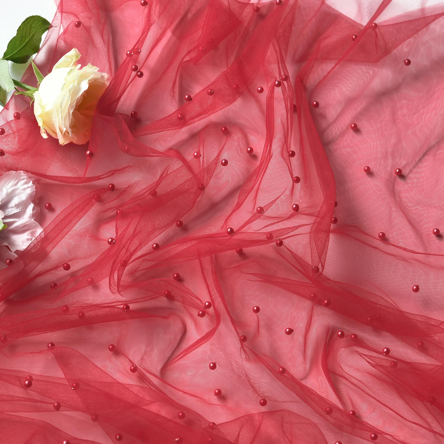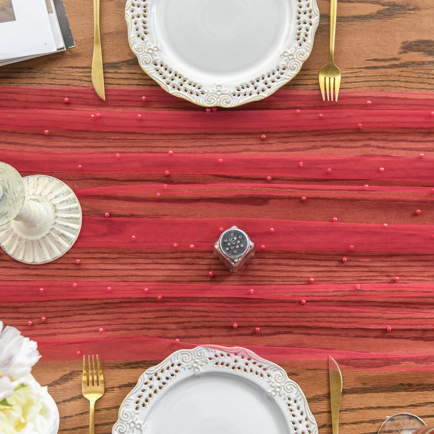 Artoid Mode Pearl Red Gauze Table Runner 59x120 Inch , Seasonal Sheer Kitchen Dining Holiday Wedding Birthday Baby Shower Table Decor for Home Party