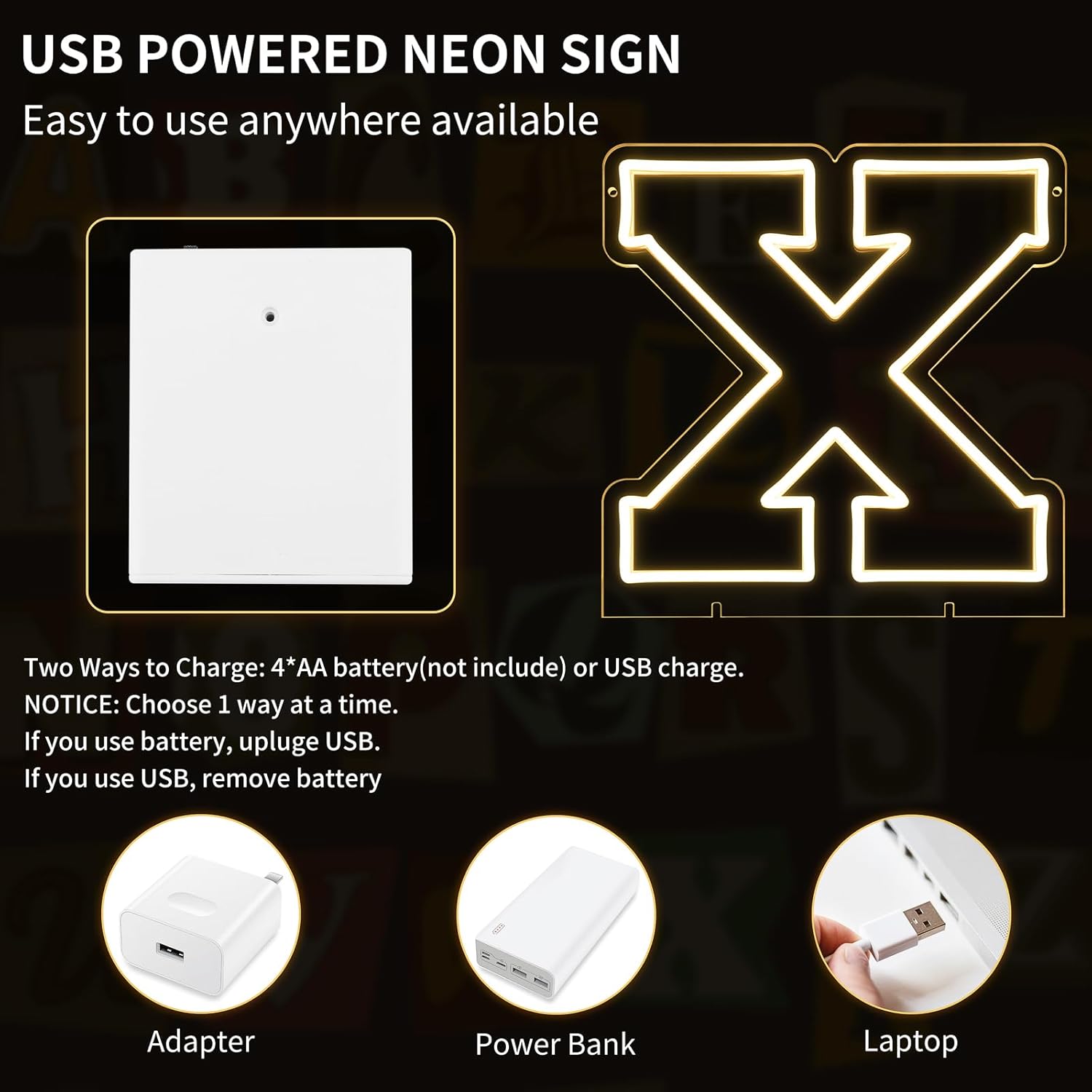 - 13.9" x 13" Letters X Light Up Sign! Whether it’s a birthday bash, wedding, kids' room, home decor, or a special event, this Letter X Neon Sign is the ultimate vibe booster! It’s also the perfect gift for Valentine’s Day, Christmas, or any occasion—your loved ones will adore it!