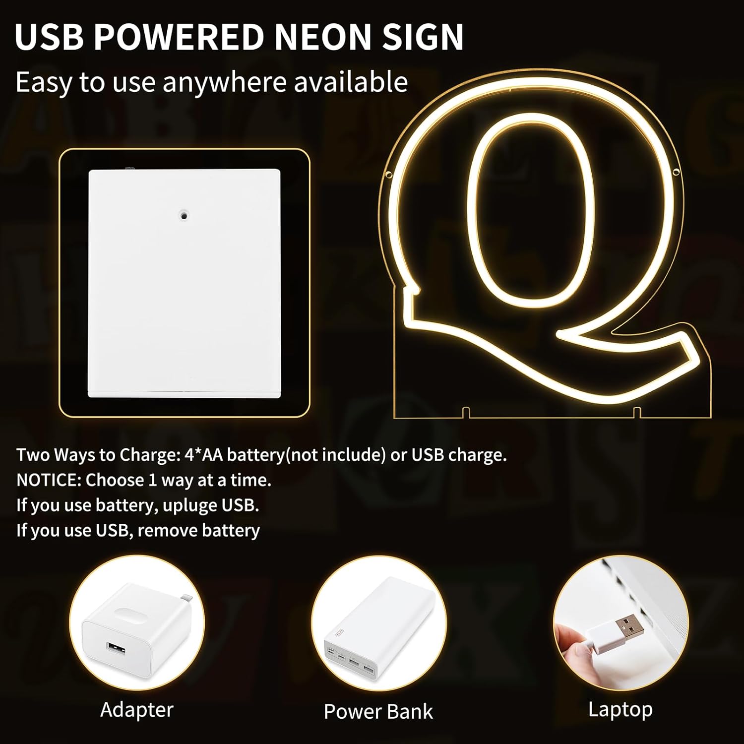 - 13.9" x 12.6" Letters Q Light Up Sign! Whether it’s a birthday bash, wedding, kids' room, home decor, or a special event, this Letter Q Neon Sign is the ultimate vibe booster! It’s also the perfect gift for Valentine’s Day, Christmas, or any occasion—your loved ones will adore it!